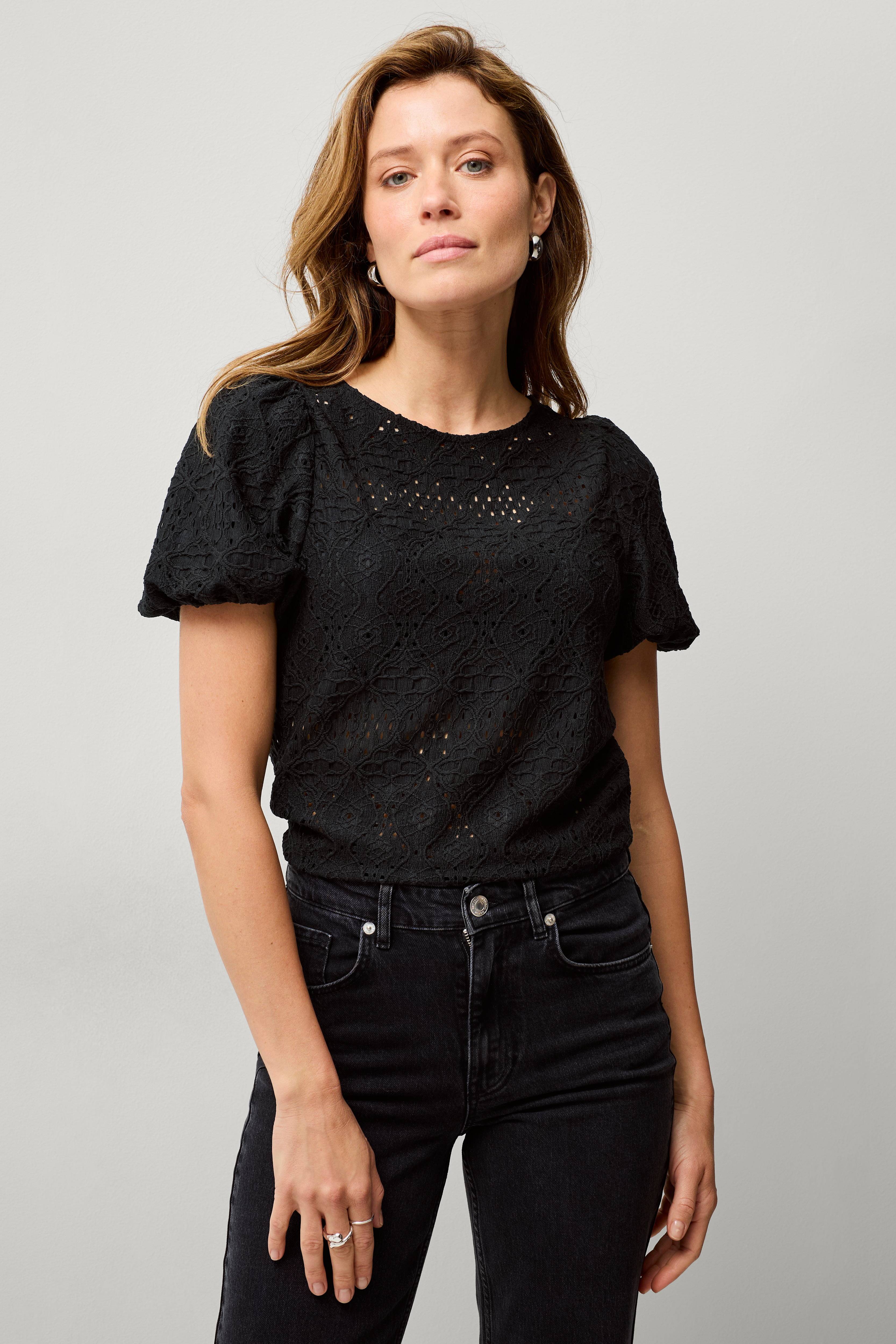 • Strukturmønstret topp med hullmønster• Korte bobleermer• Lengde: 57 cm i størrelse 34/36