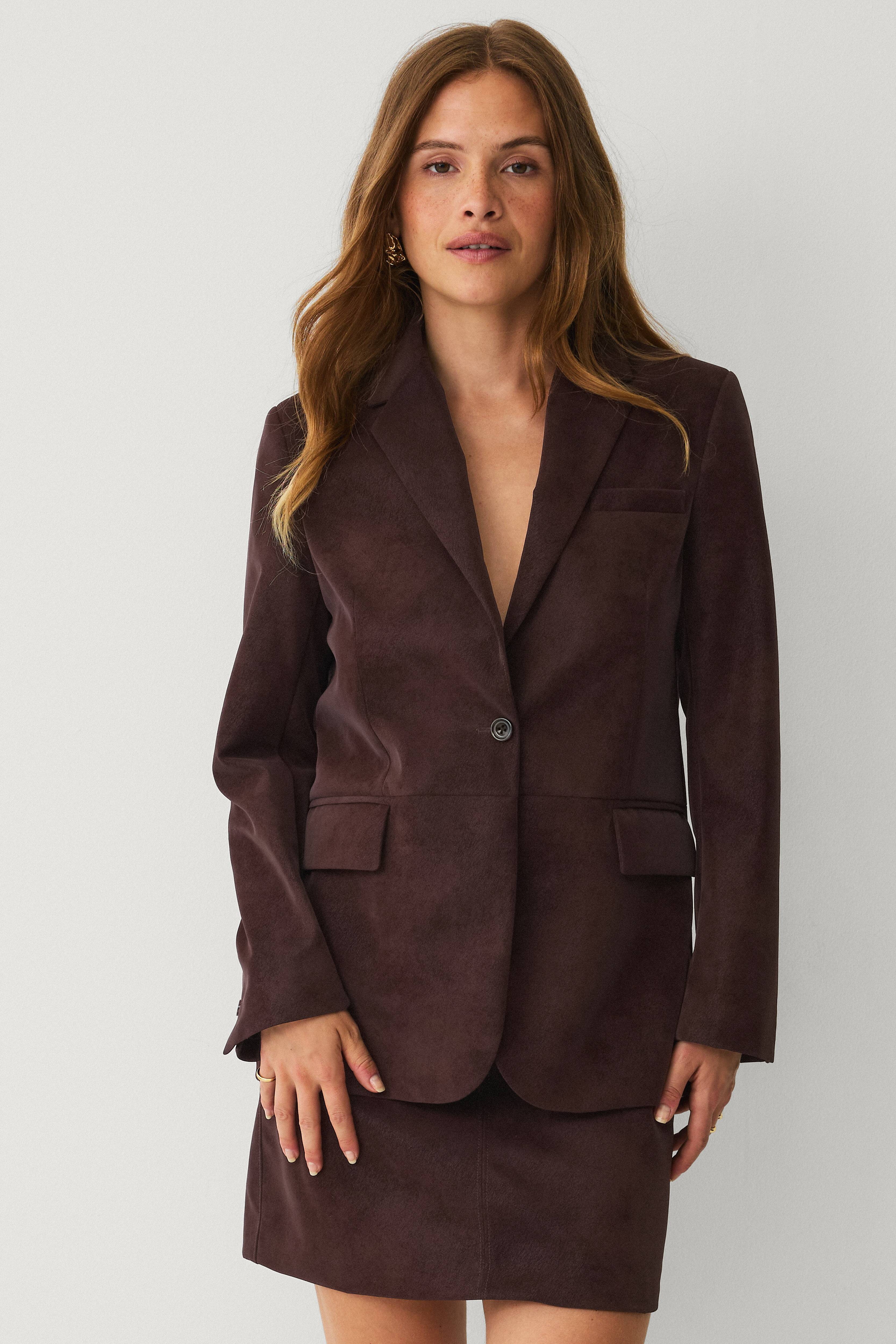• Semsket jakke med vevd, skinnende foring• V-formet hals med krage• Brystlomme• Knapp foran• Frontlommer med lokk• Lengde: 72 cm i størrelse 36