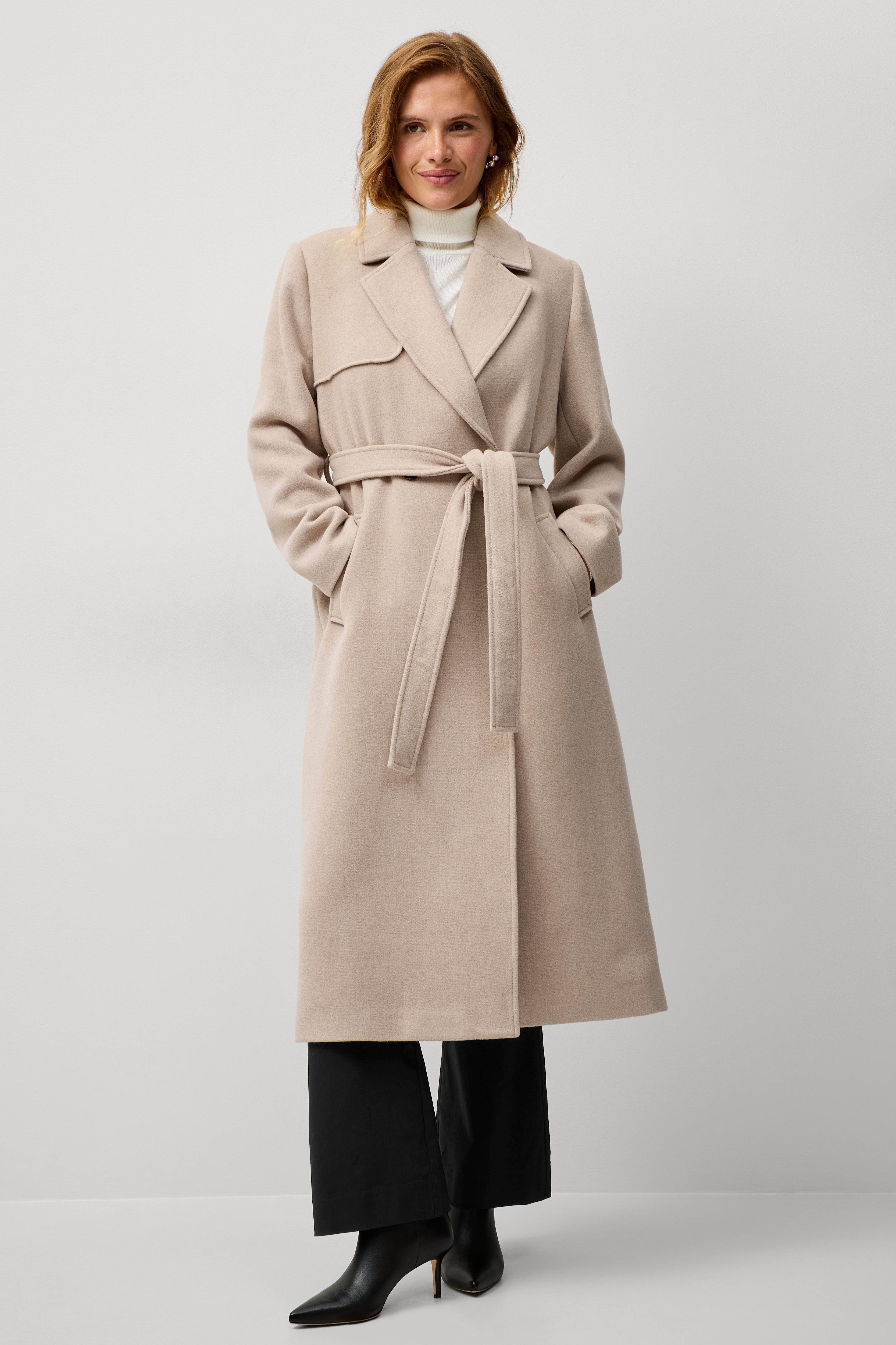Mangler innerlomme. Beltet er unødvendig langt og hele kåpen har form som en for stor morgenkåpe. Jeg bruker vanligvis størrelse 40-42 og bestilte en i størrelse 40. S…