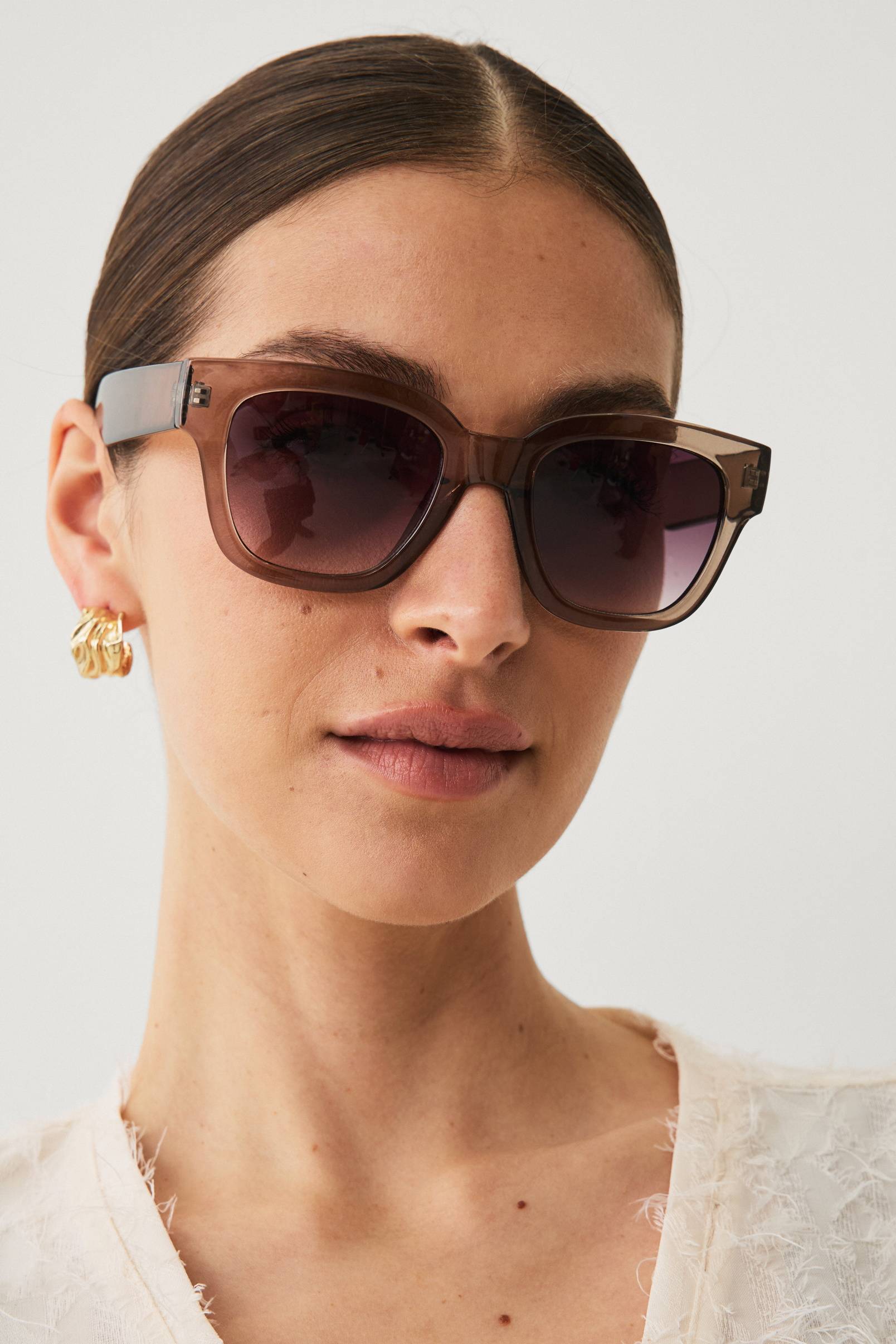 • Firkantet, litt tykkere solbrille med farget Plastglass•