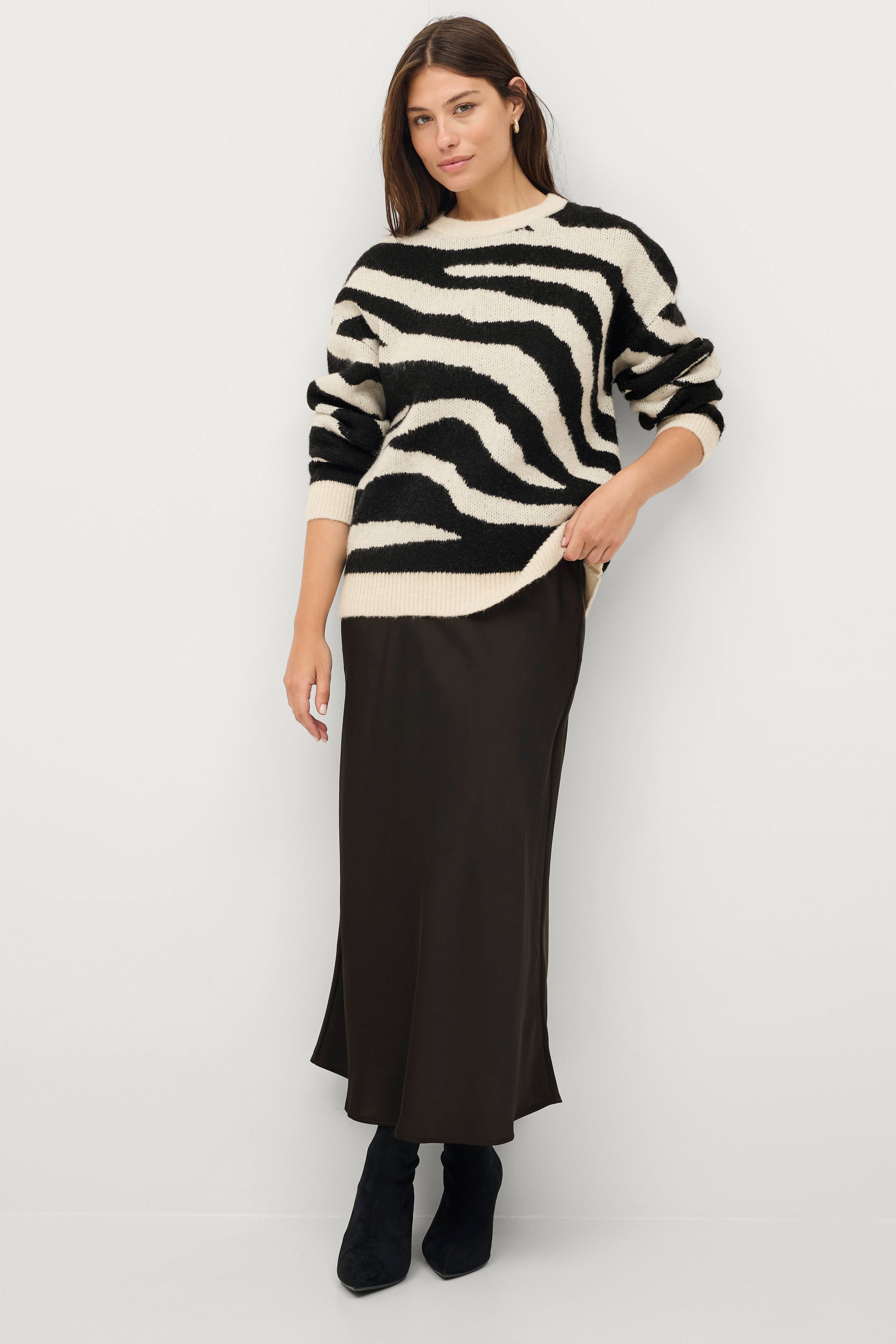 Modellen er 175 cm høy og har på seg størrelse 36