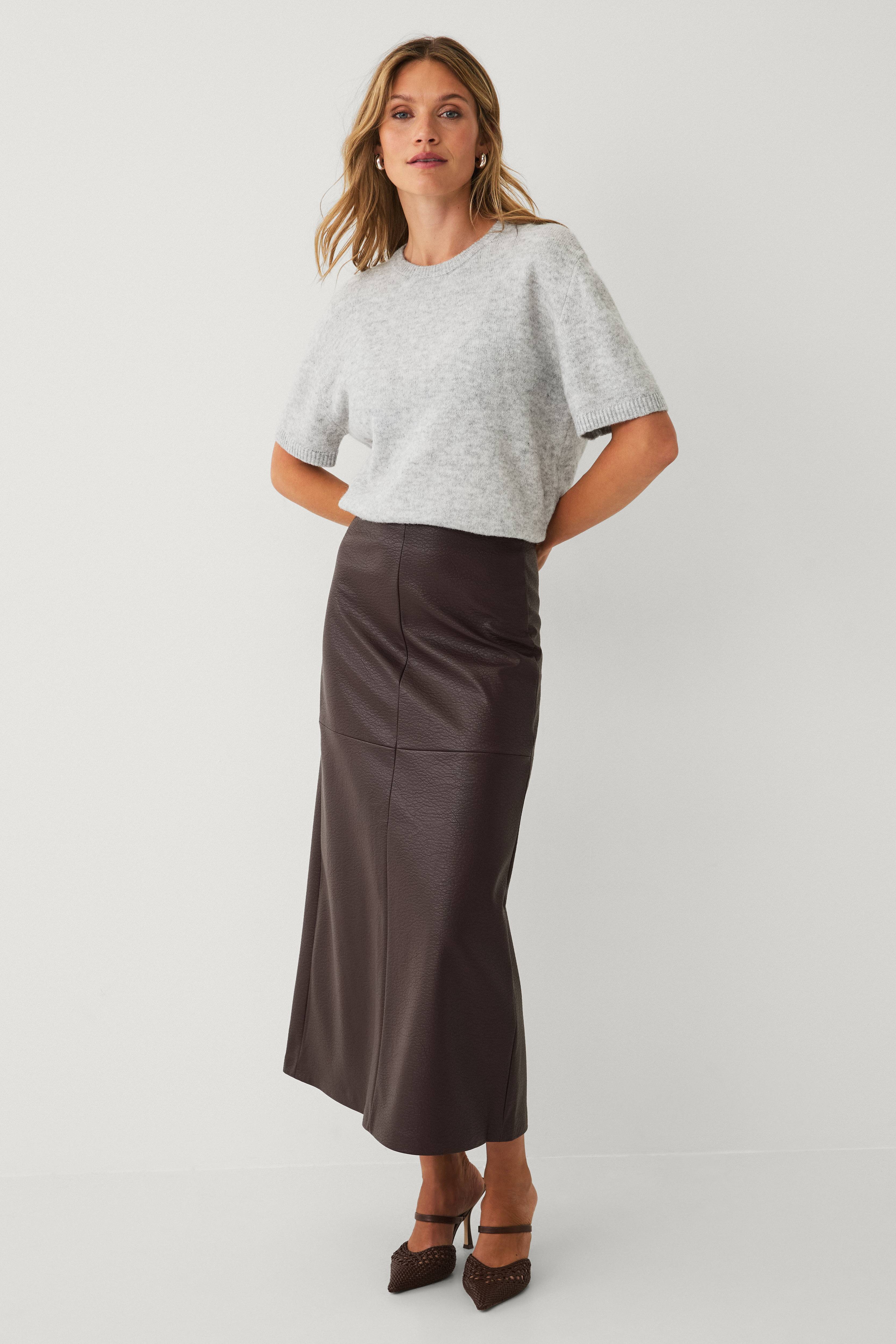 Midi-skjørt i kunstlær