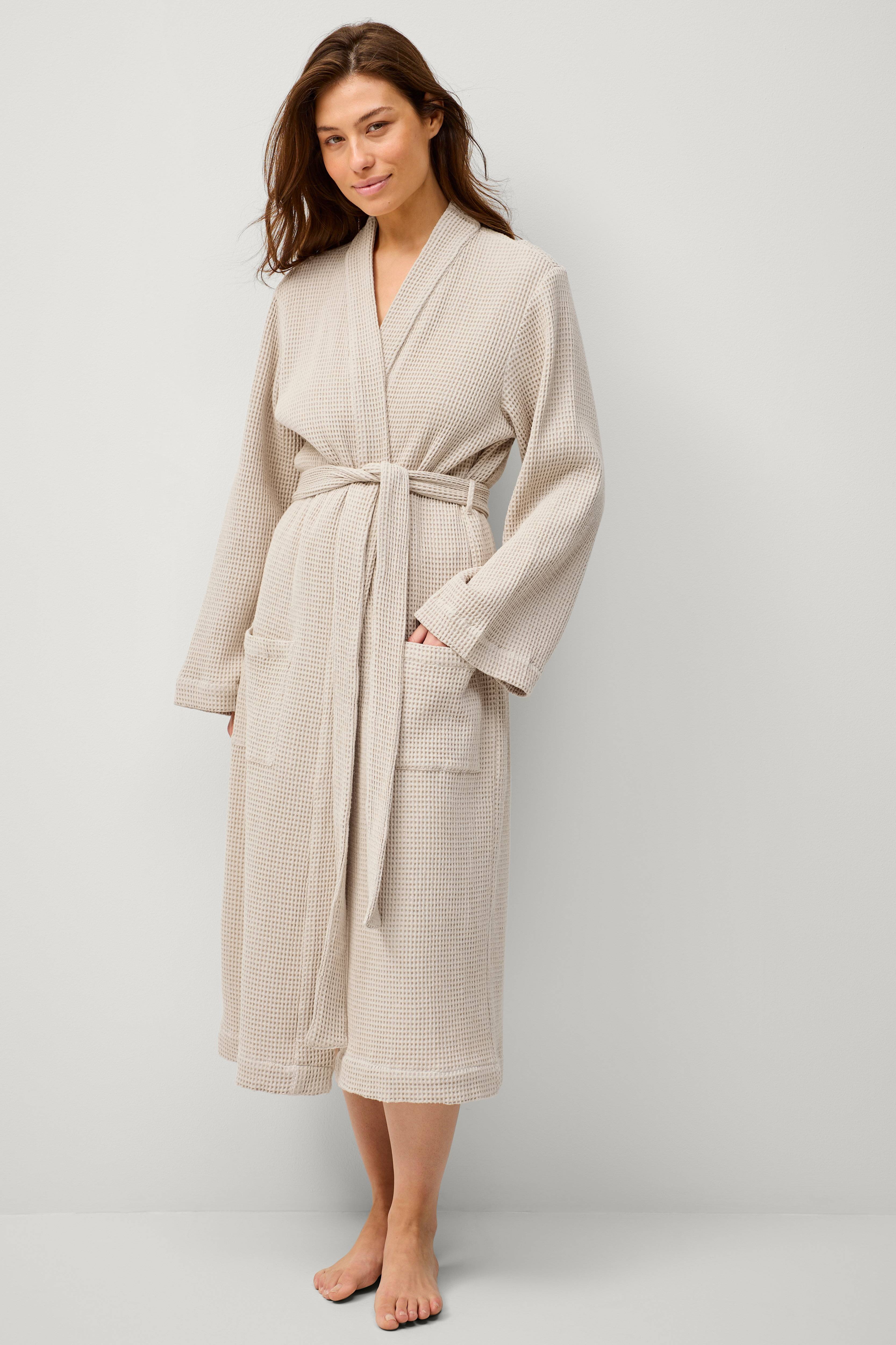 • Morgenkåpe med vaffelstruktur• Knytbart belte• Lommer foran• Lengde: 120 cm i størrelse S