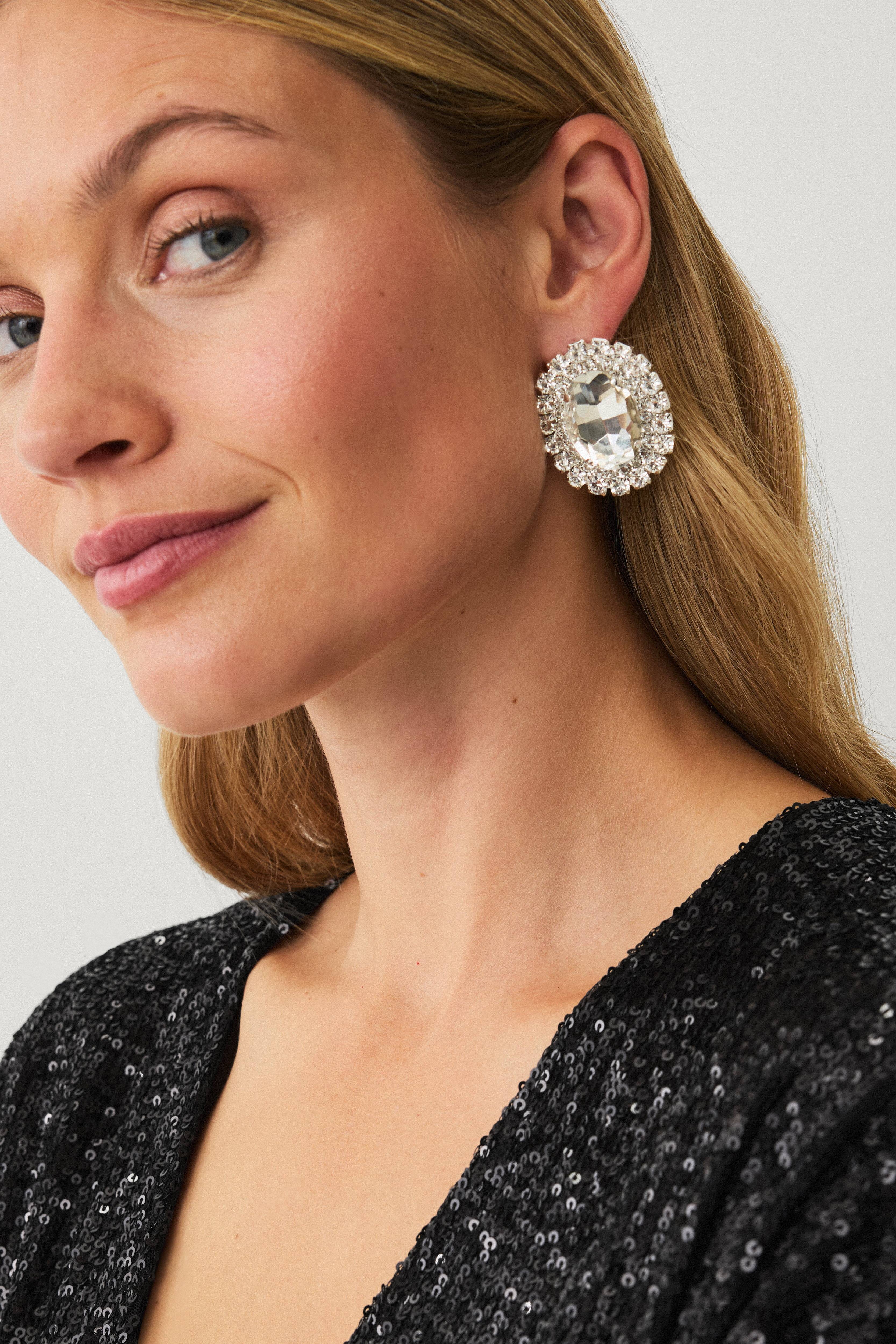 • Ørestikker i messing• Dekorative rhinstener i glass