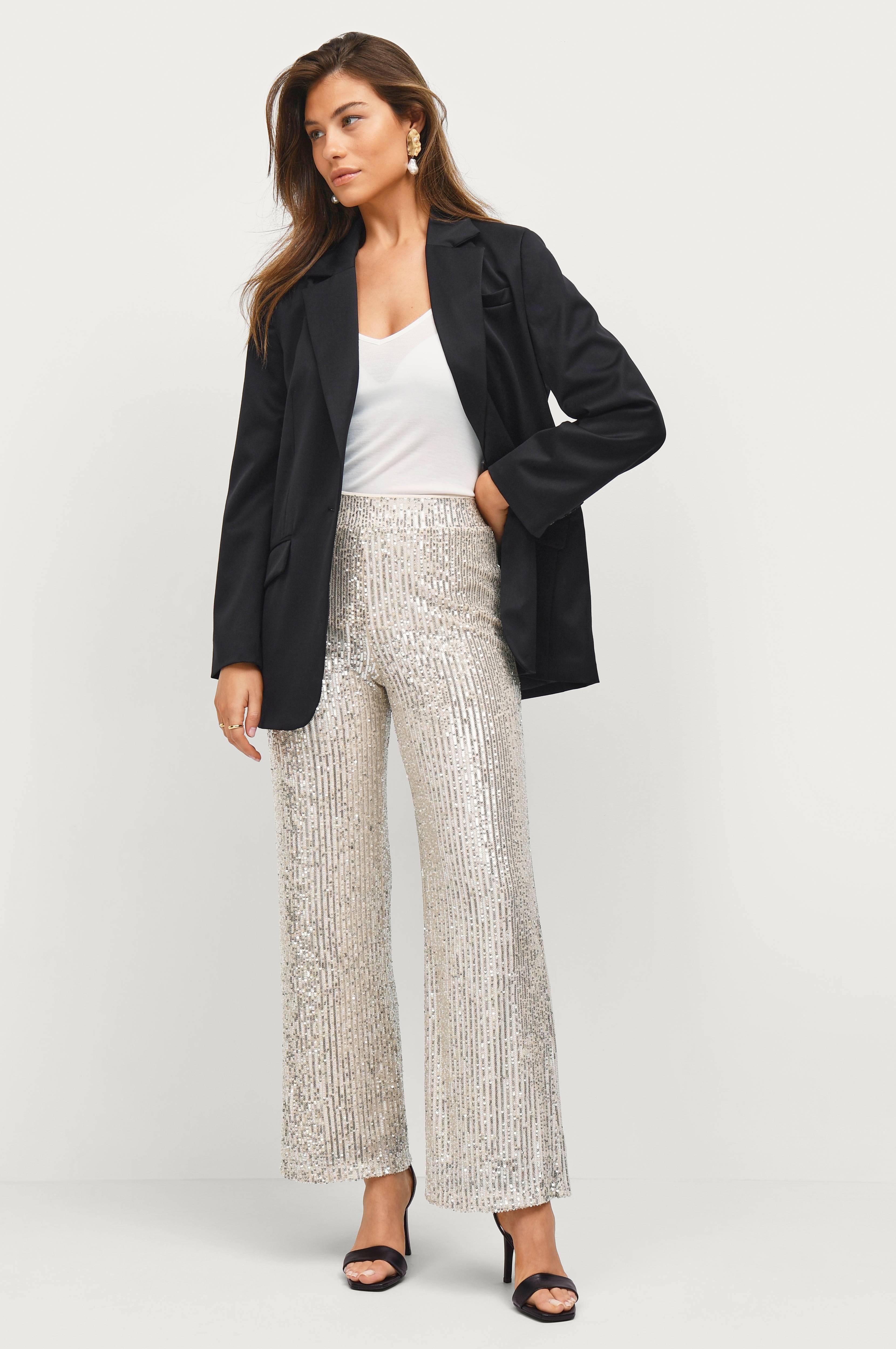 • Bukser i meshtrikot med skimrende paljetter• Elastisk midje• Brede bein• Foring i tricot