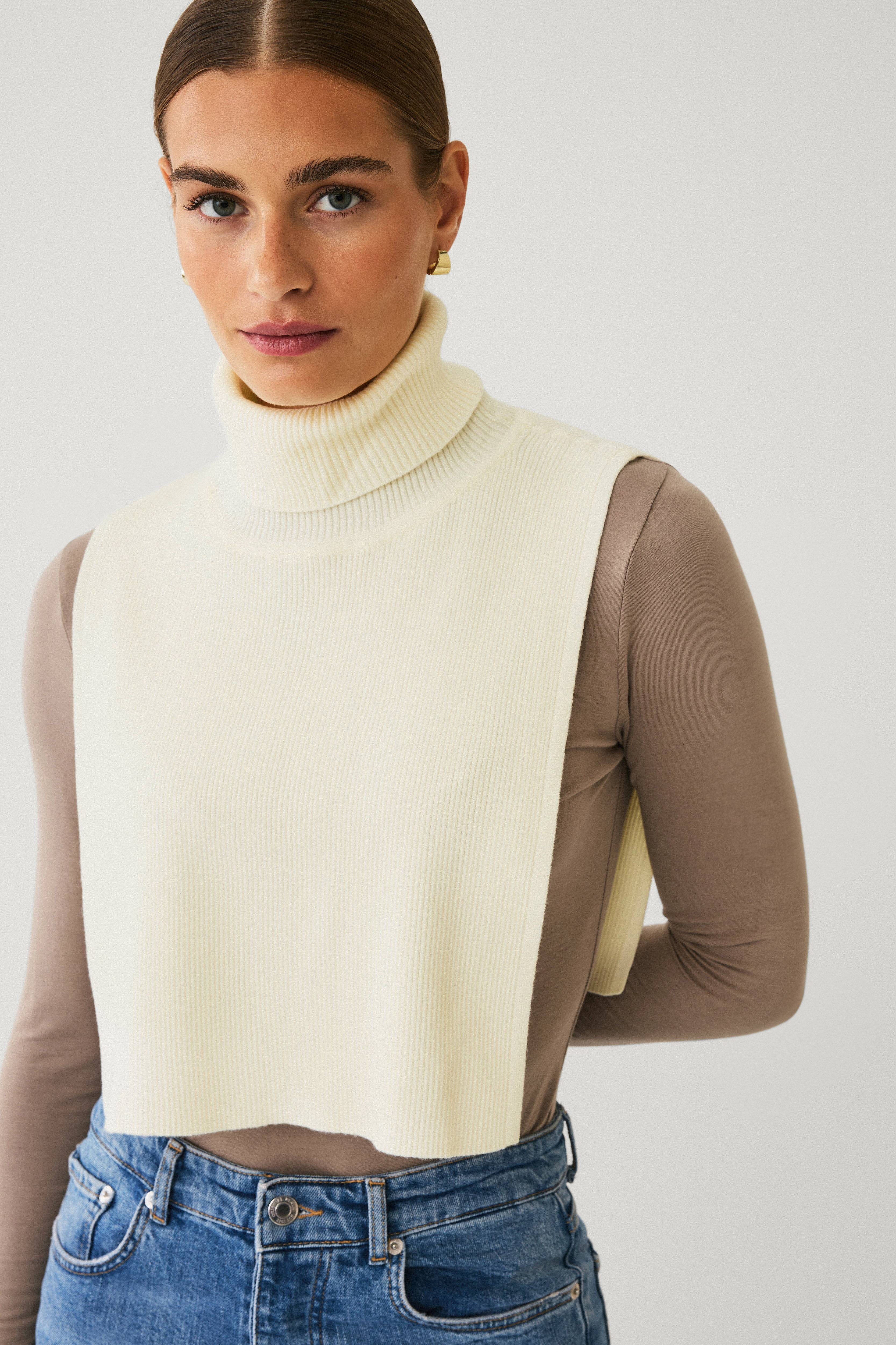 • Myk, finstrikket turtleneck i viskosemiks• Ribbestrikket design• Åpne sider.