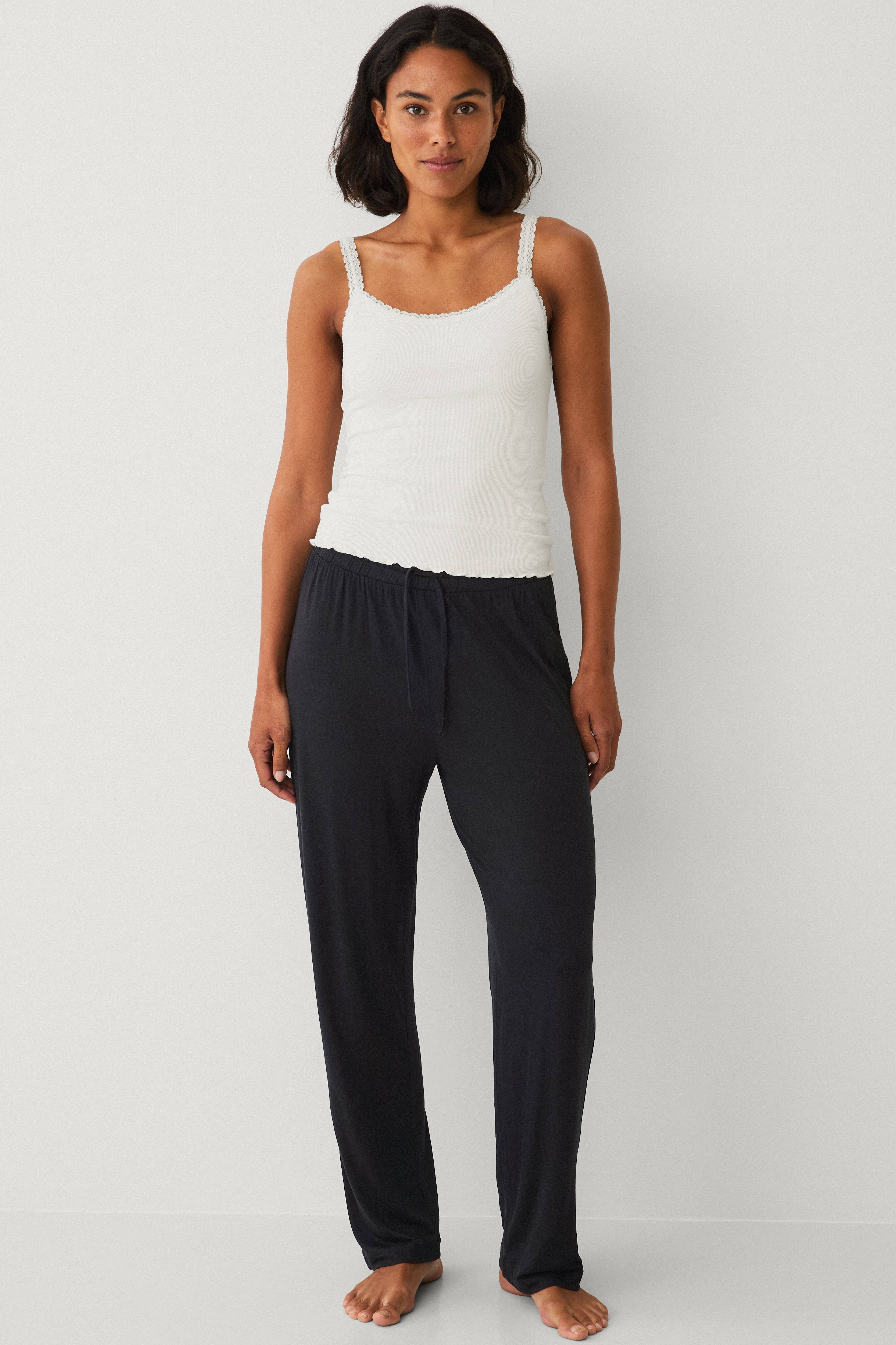 Behagelige og myke, med strikk og snøring i midjen så man kan stramme dem