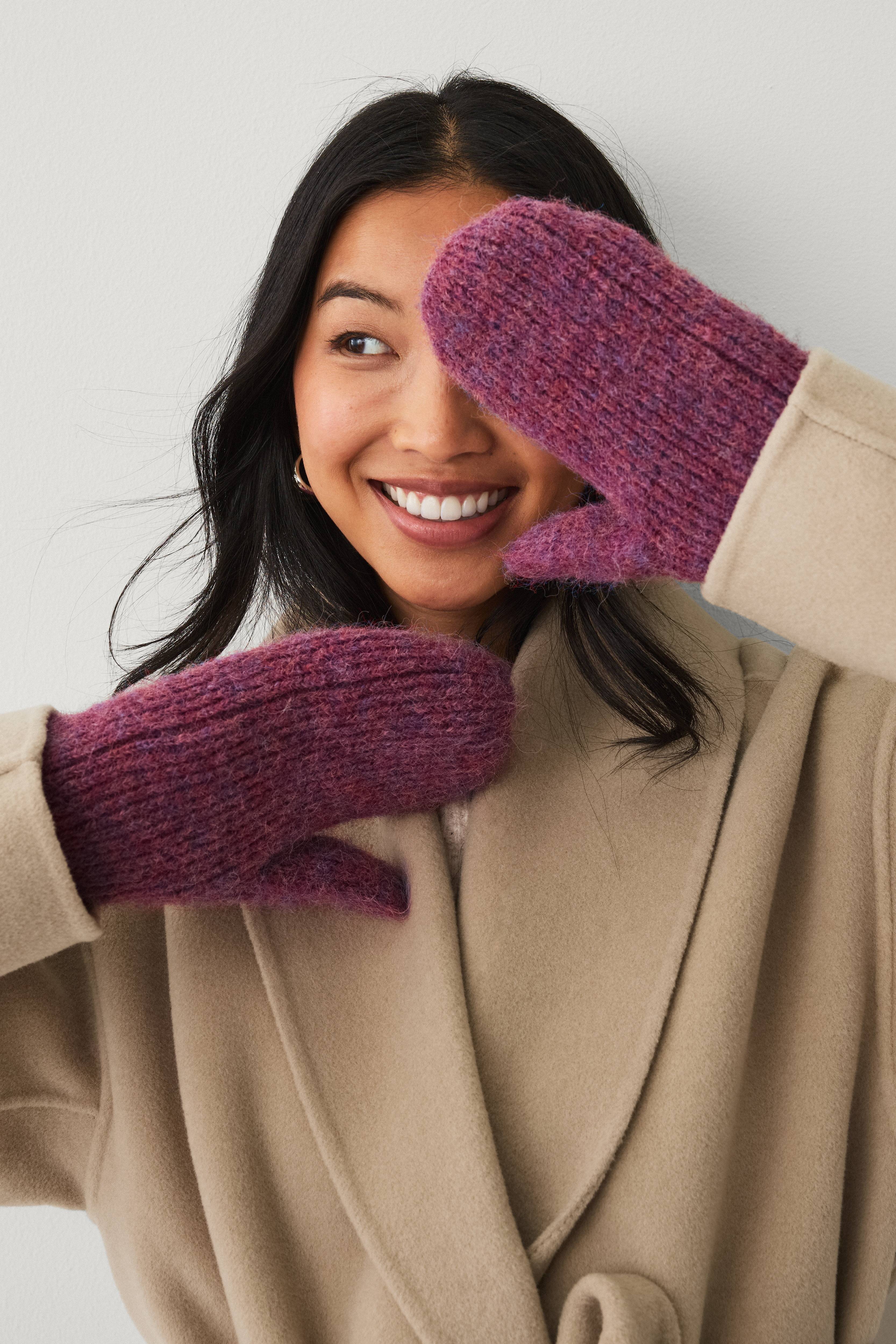 • Ribbestrikkede, myke tommelvotter• Fôret innside• Oppbrettet hem