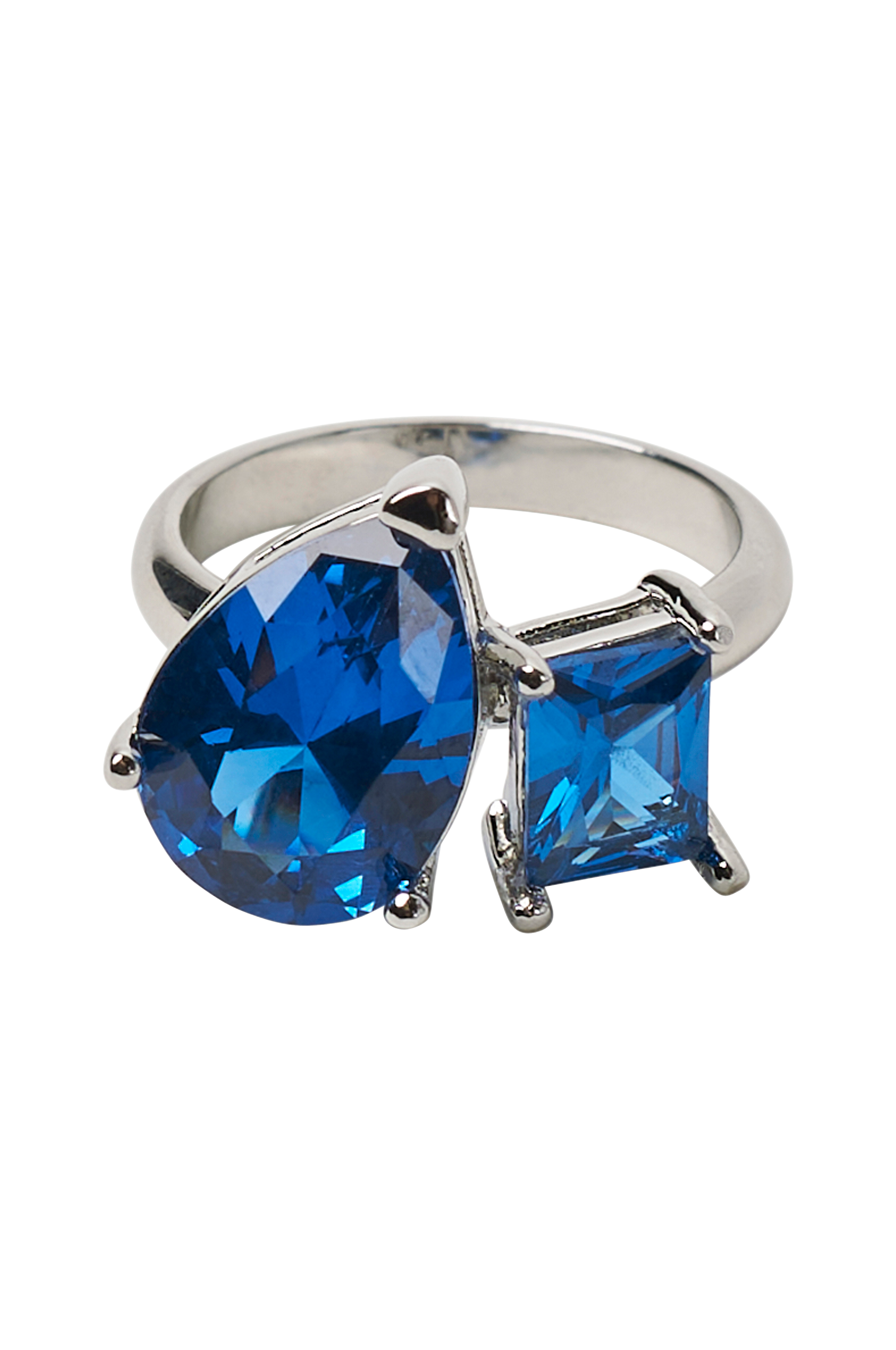 Ring med to forskjellig formede glassteiner. Mål stor stein ca. 1,5 x 1 cm.