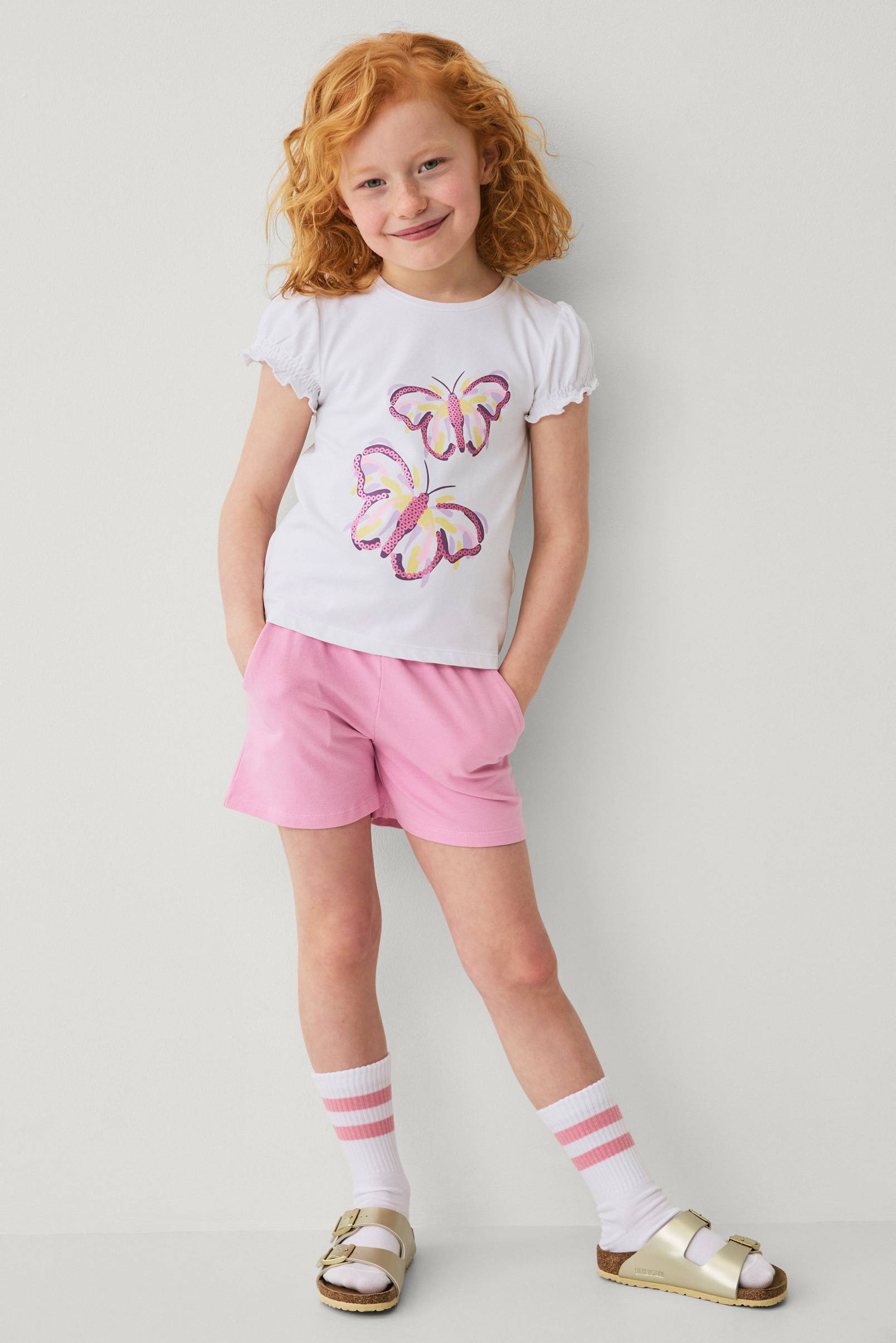 • Sett med topp og shorts• Topp med rund hals og trykk• Korte puffermer med vaffelsøm i ermeslutten• Shorts med elastisk midje og sidelommer