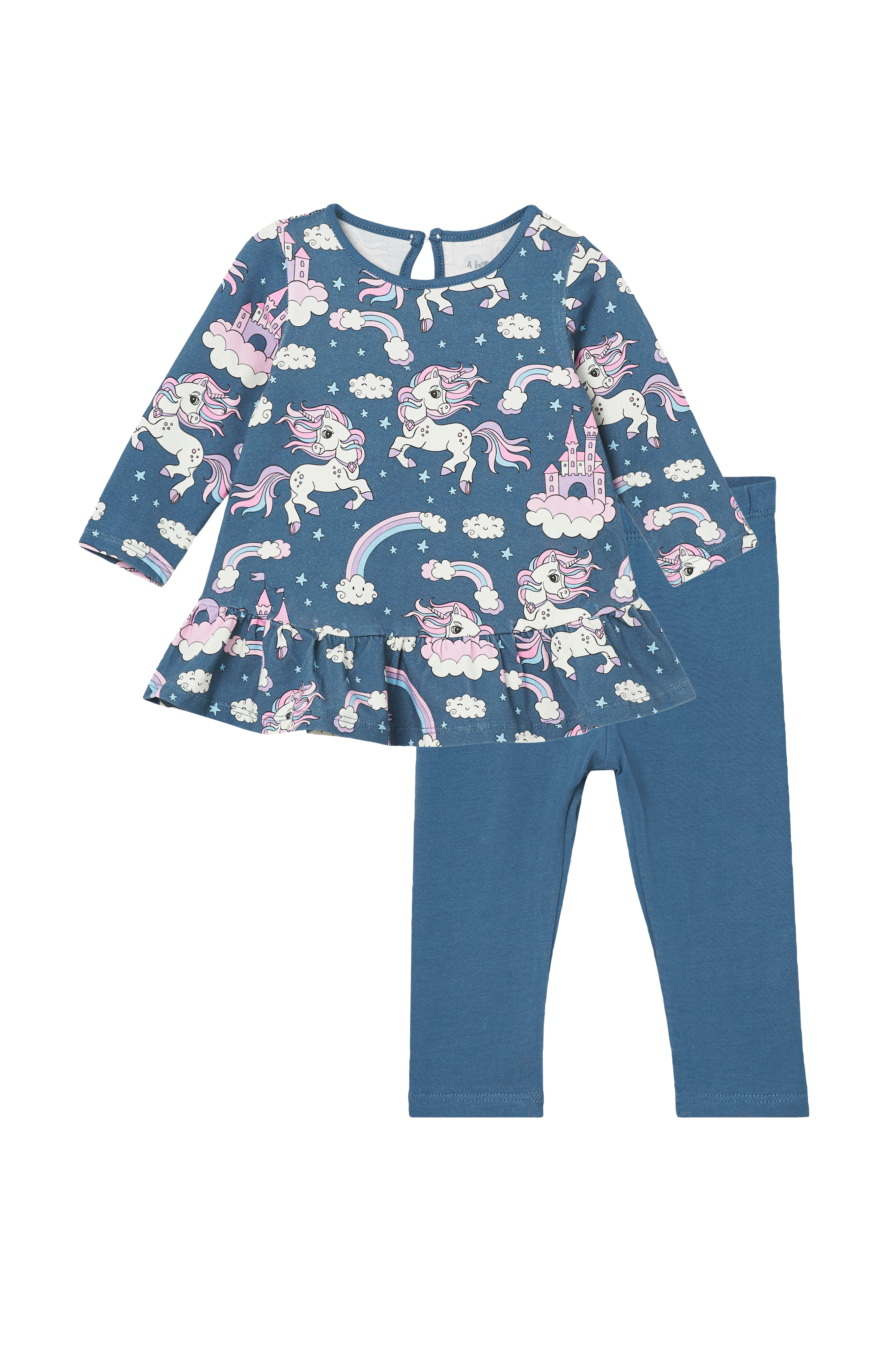 • Langermet kjole med volang på bunnen • Knapp i nakken • Leggings med elastisk midje • Produktet inneholder økologisk bomull som er dyrket uten kjemiske sprøytemidler, kunstgjødsel og genmodifiserte avlinger (GMO). Det innebærer et sunnere arbeidsmiljø for bønder og et bedre jordsmonn.