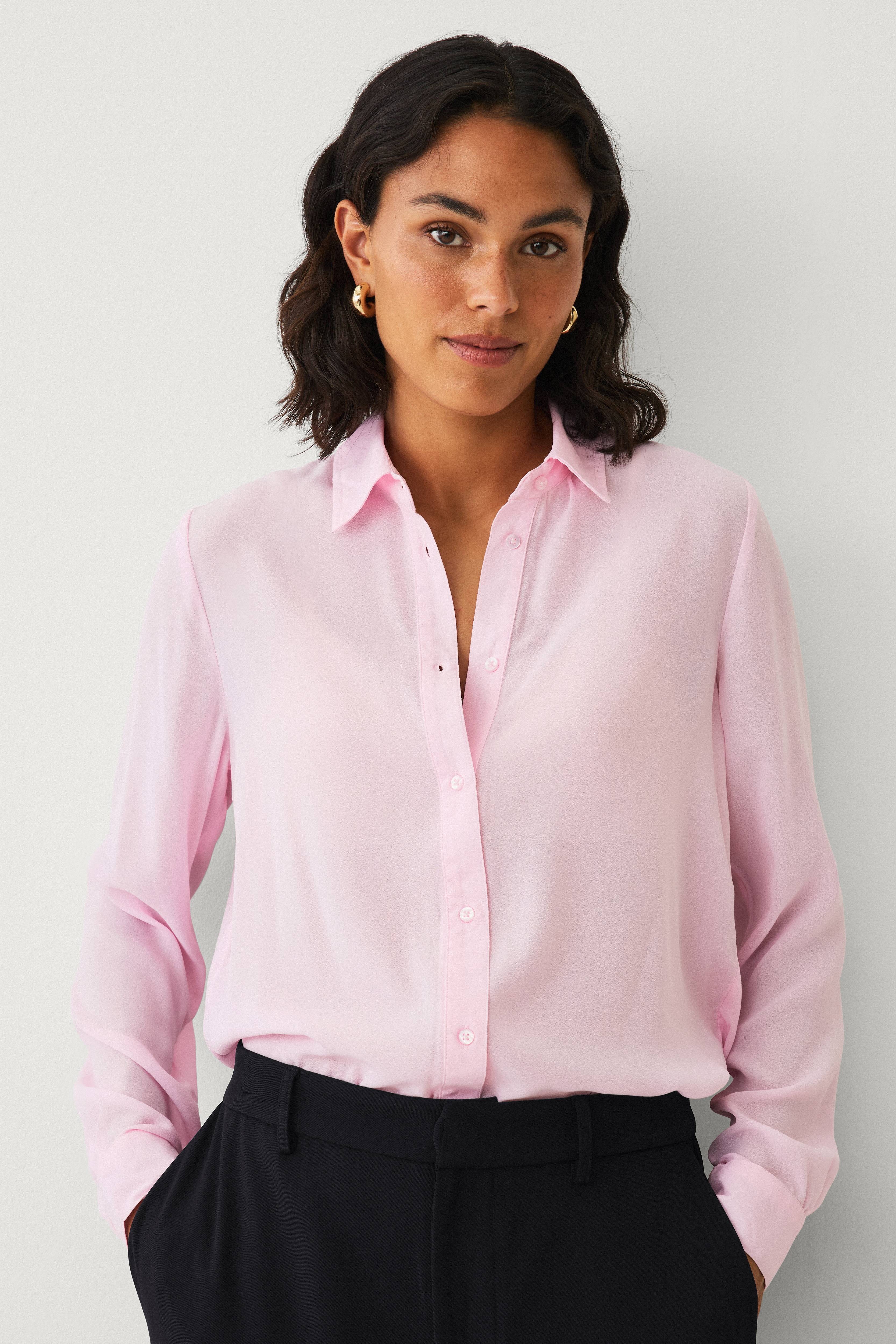 fin bluse. elsker stoffet. den rosa fargen er så vakker og klassisk. Størrelsen passet utmerket.
