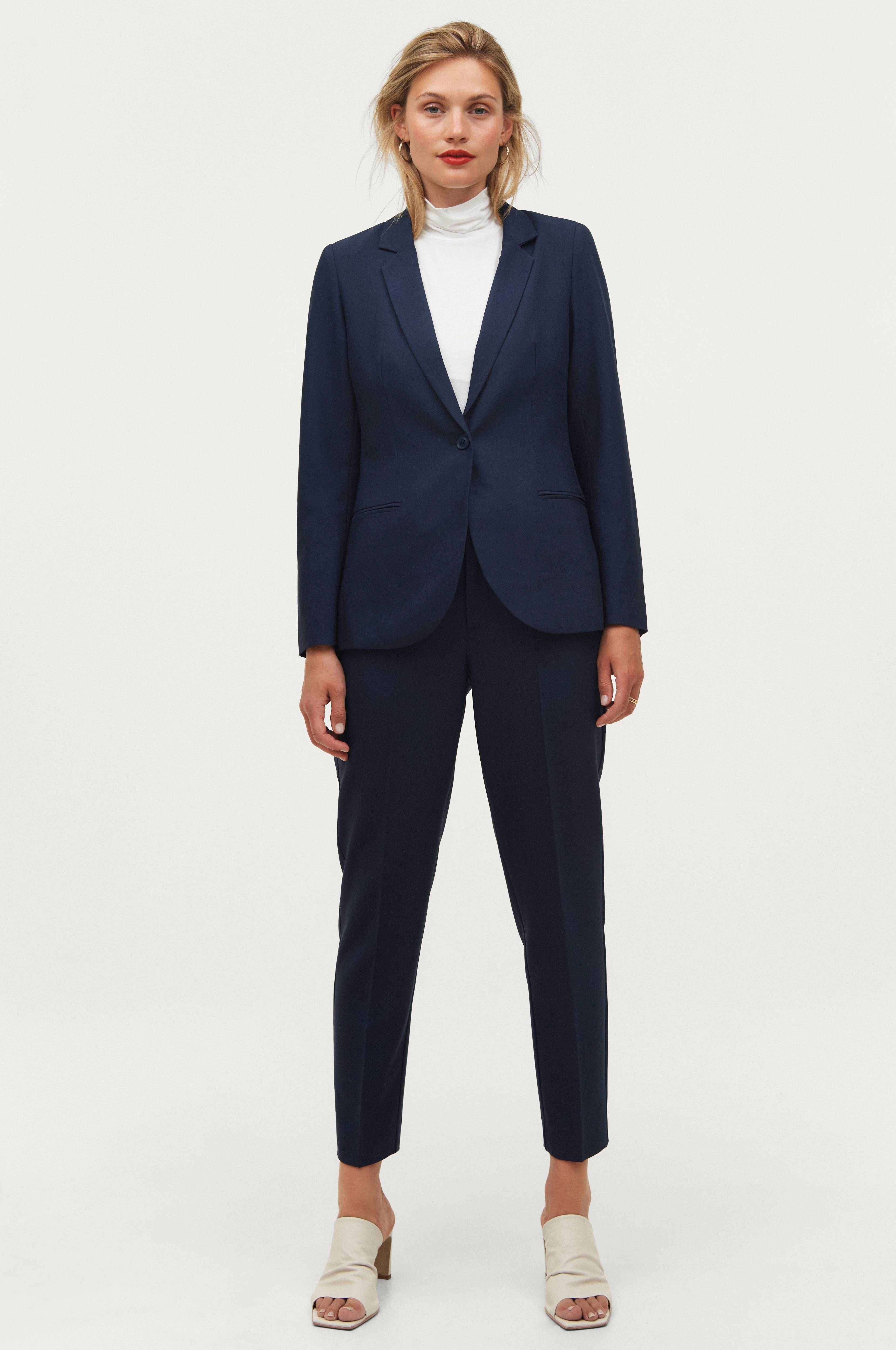 Modellen er 176 cm høy og har på seg størrelse 36R