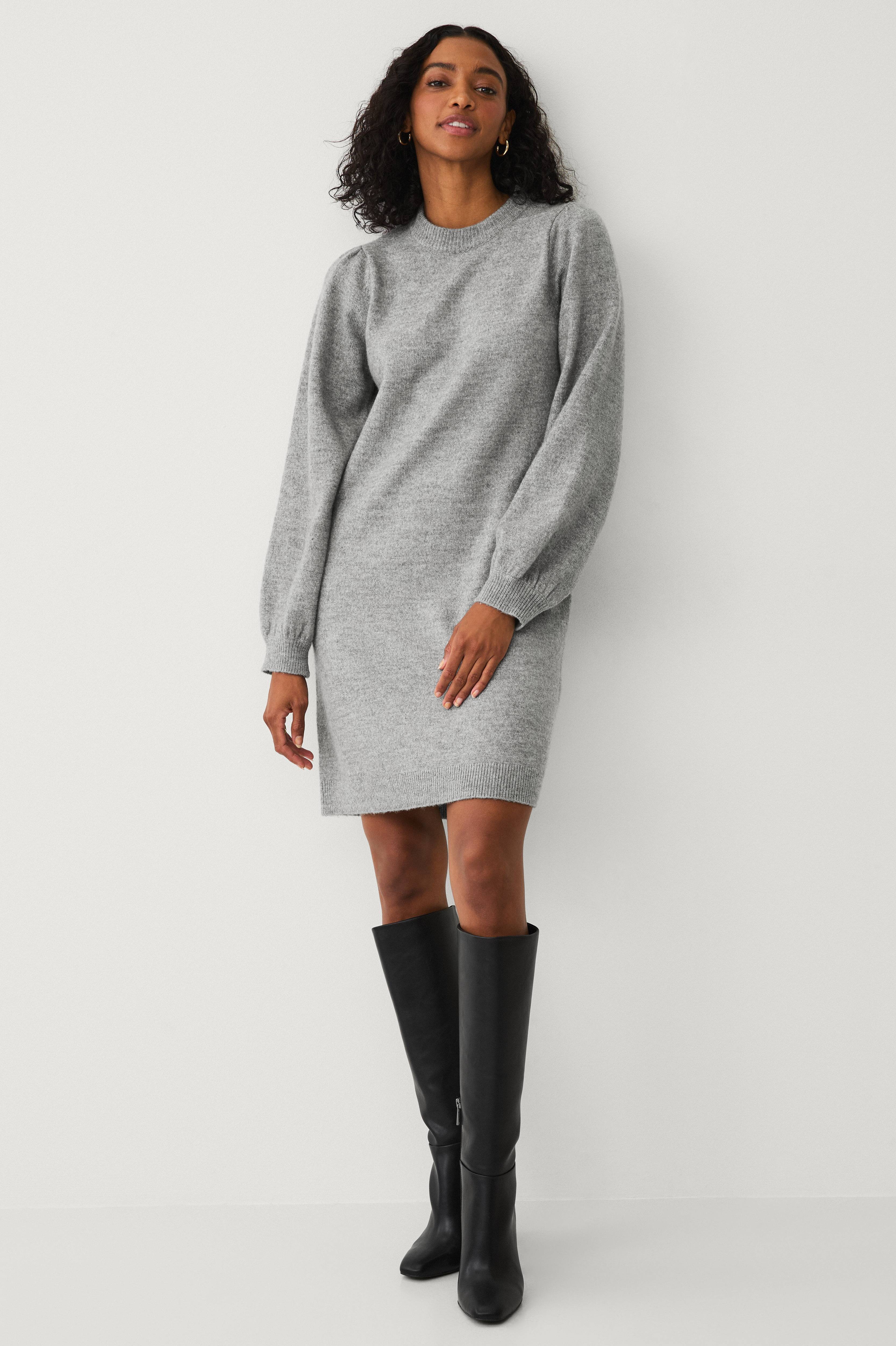 • Strikket kjole med lange puffermer