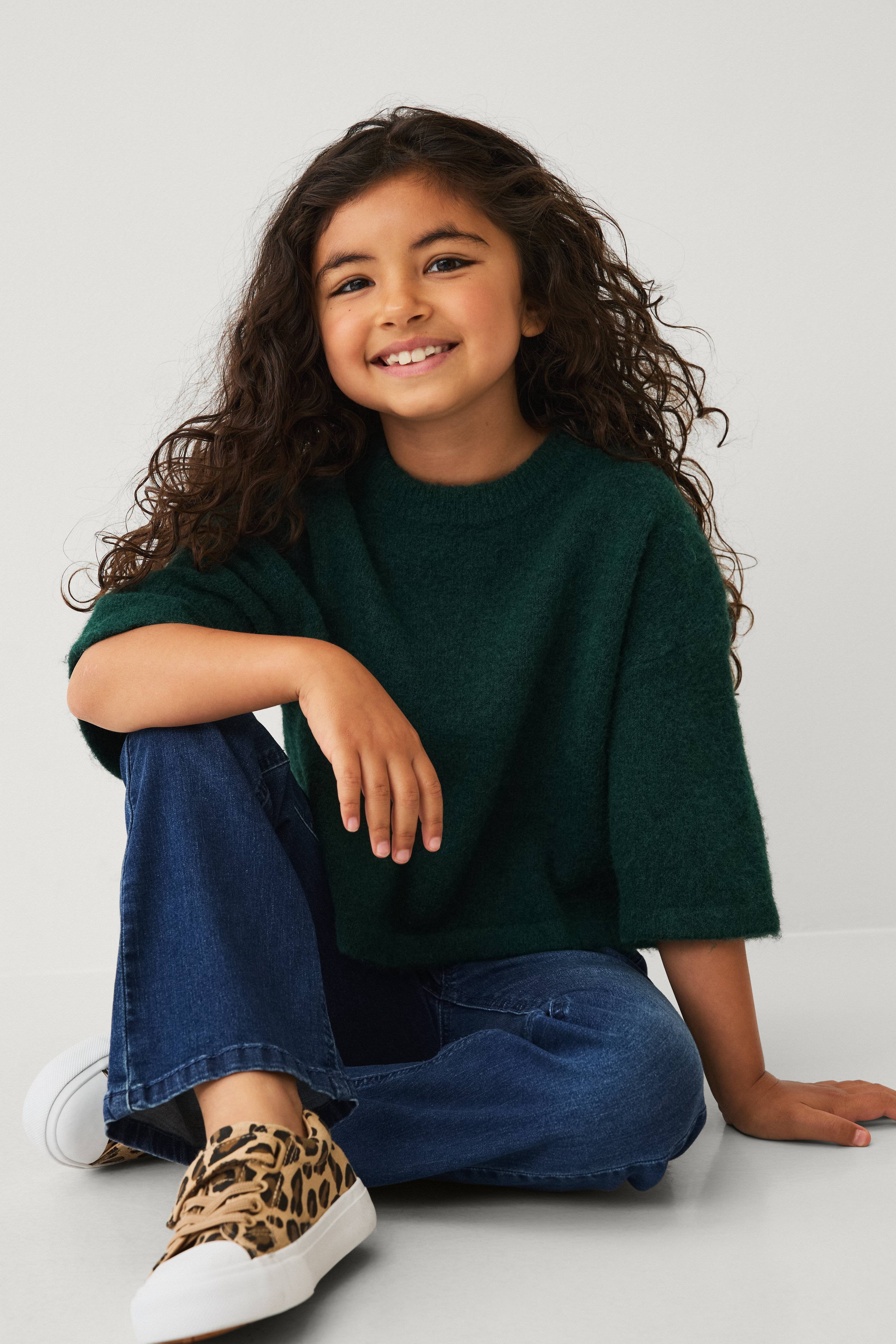 • Kortermet, strikket topp• Avkortet modell• Rund, ribbet hals