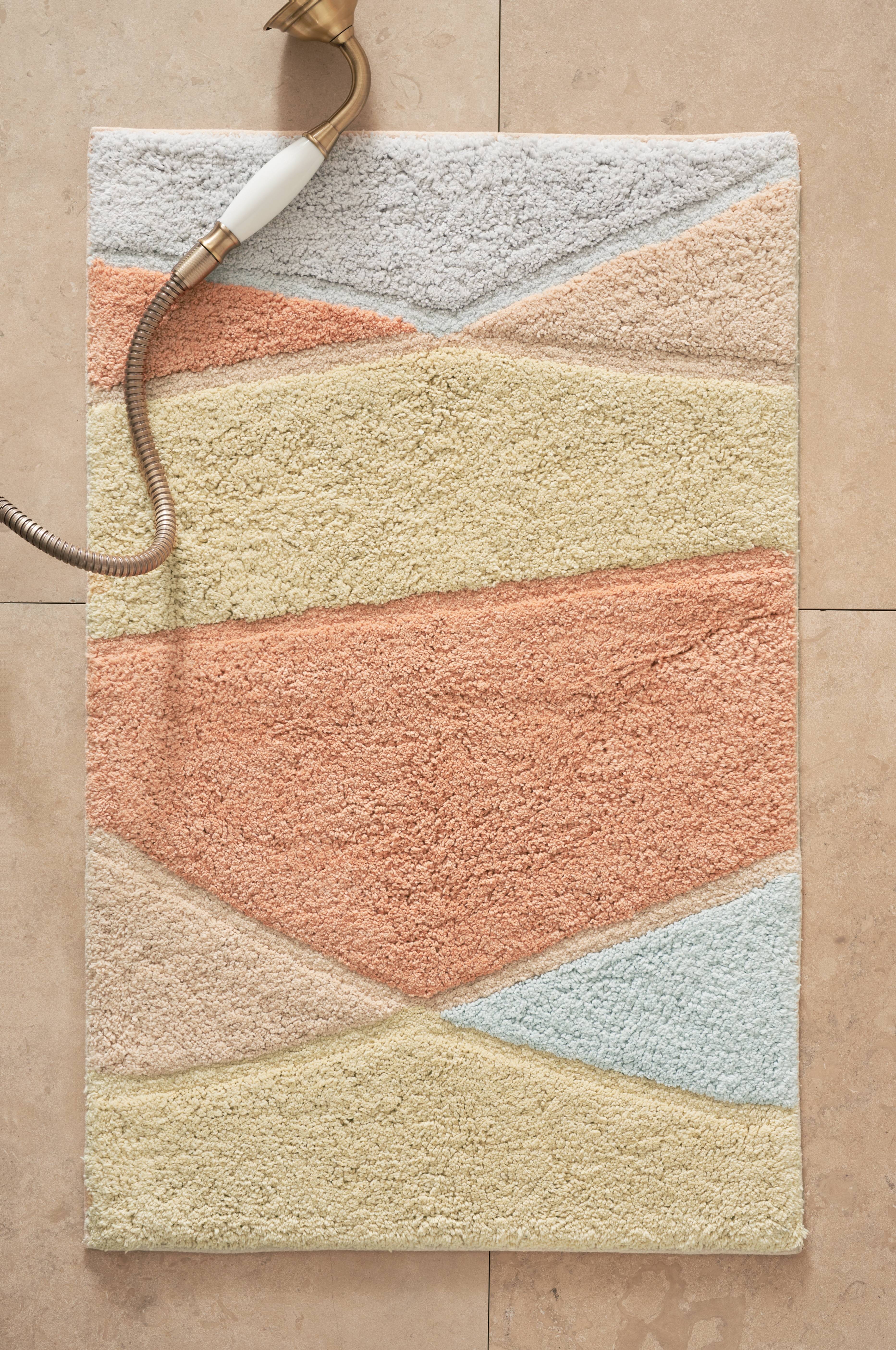 Tuftet, myk baderomsmatte av bomull. Sklifri bakside med latexbehandling.