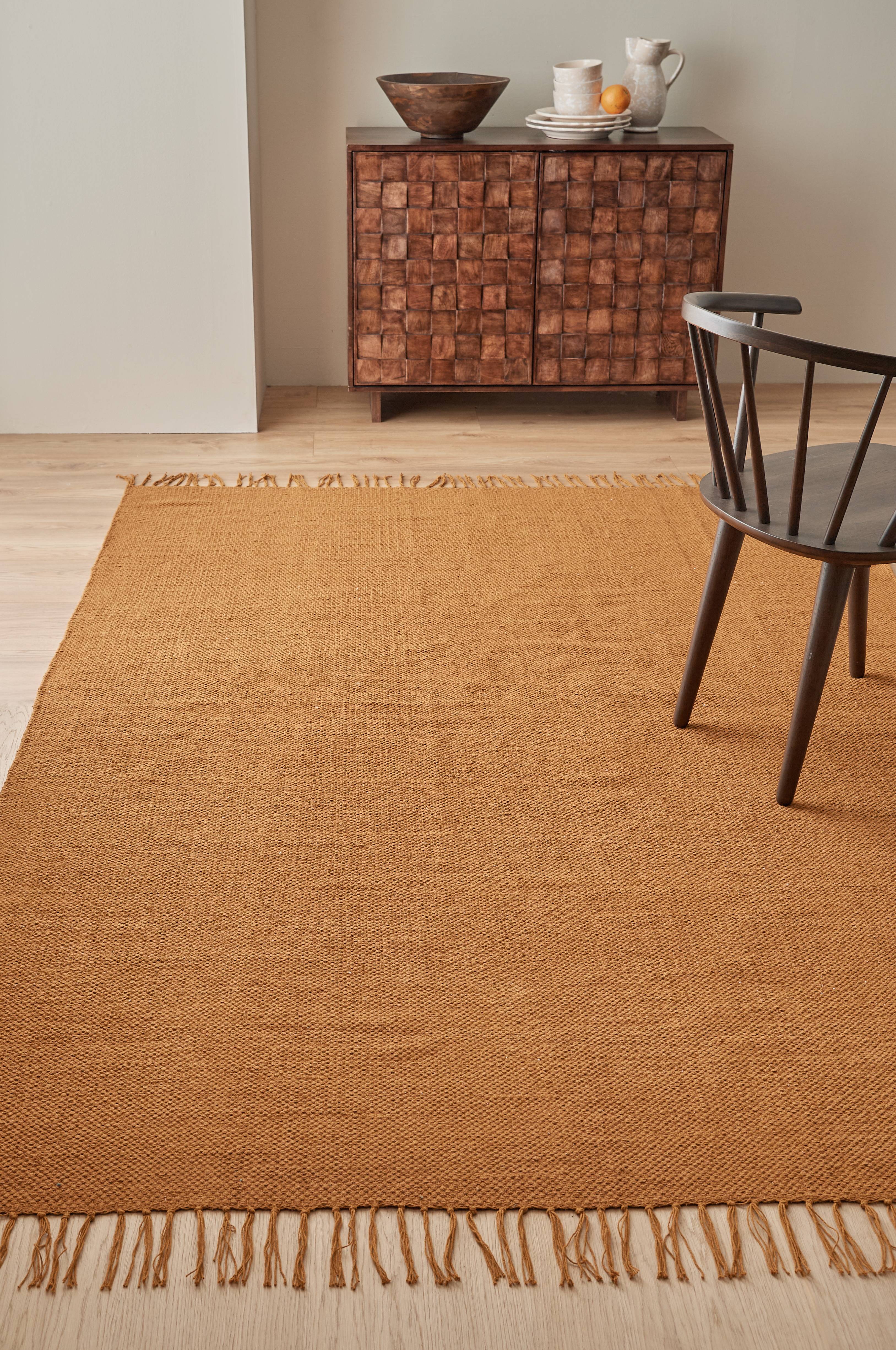 Glattvevd bomullsteppe med fargede frynser. Høyde 0,5 cm.