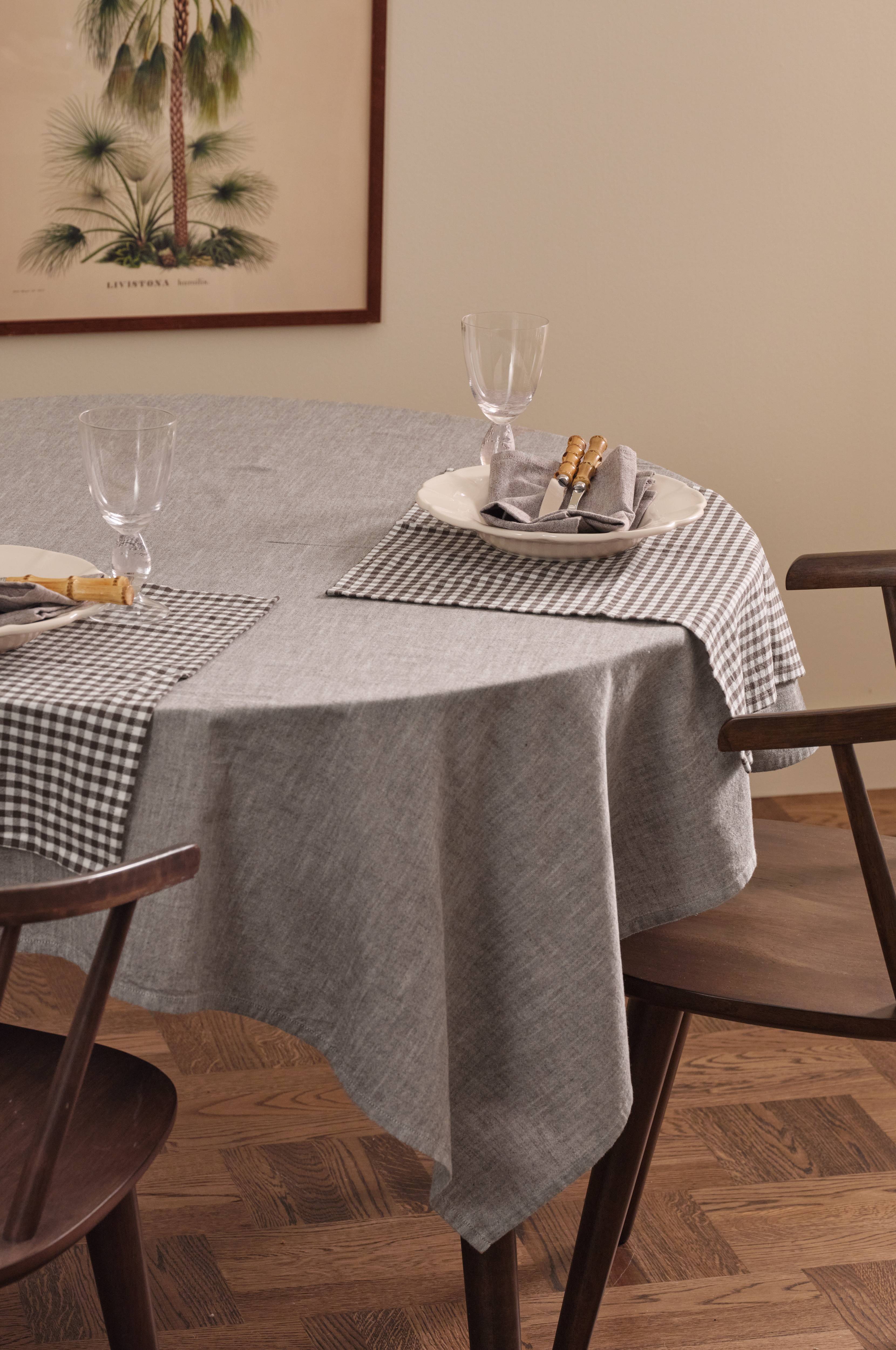 Veldig bra for et bord med 110 cm diameter. Trenger ikke engang å strykes.