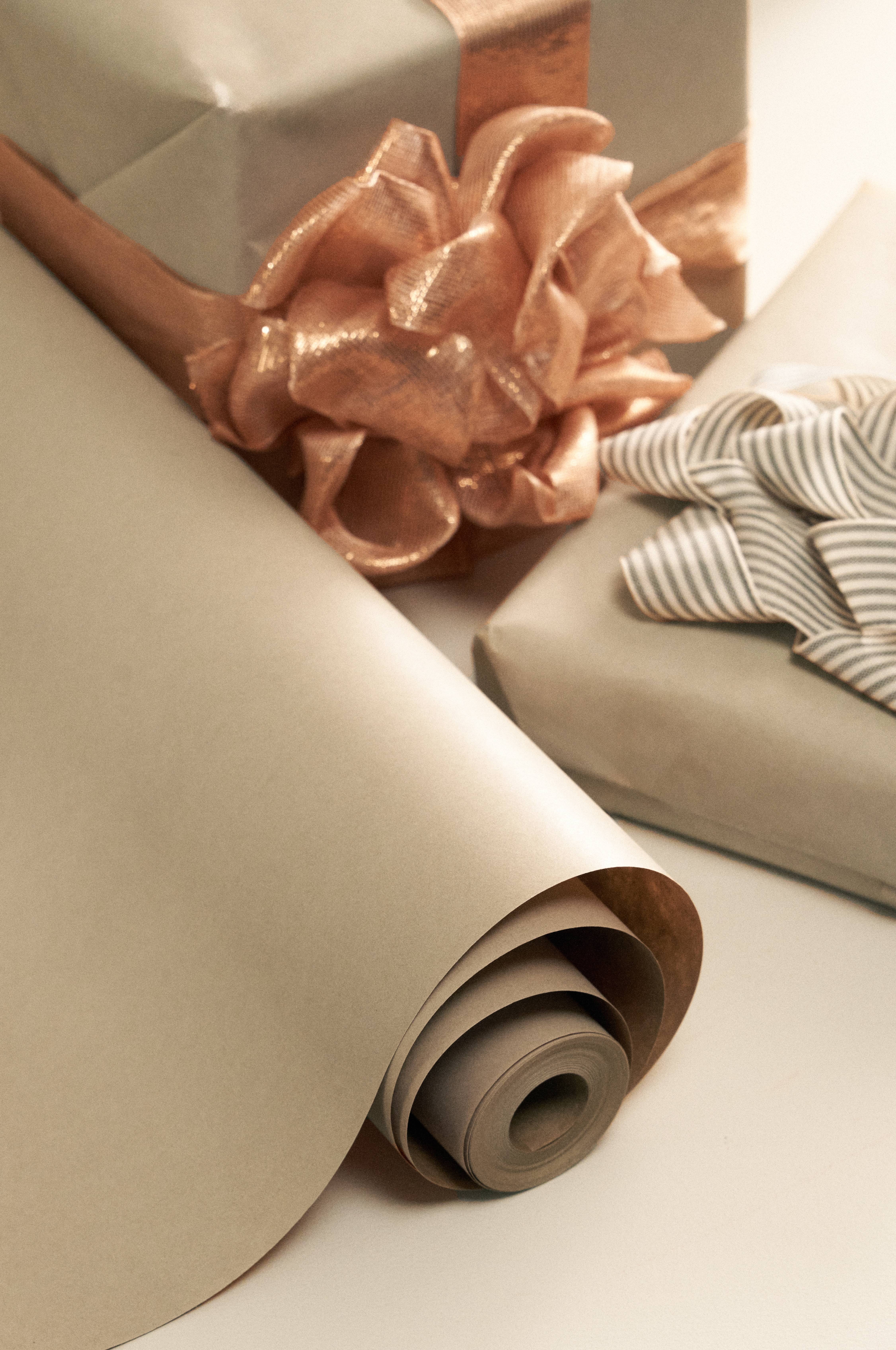 Trykt, ensfarget, matt gråpapir i kraftig kvalitet. 80 g. Bredde 57 cm. Lengde per rull: 10 meter.