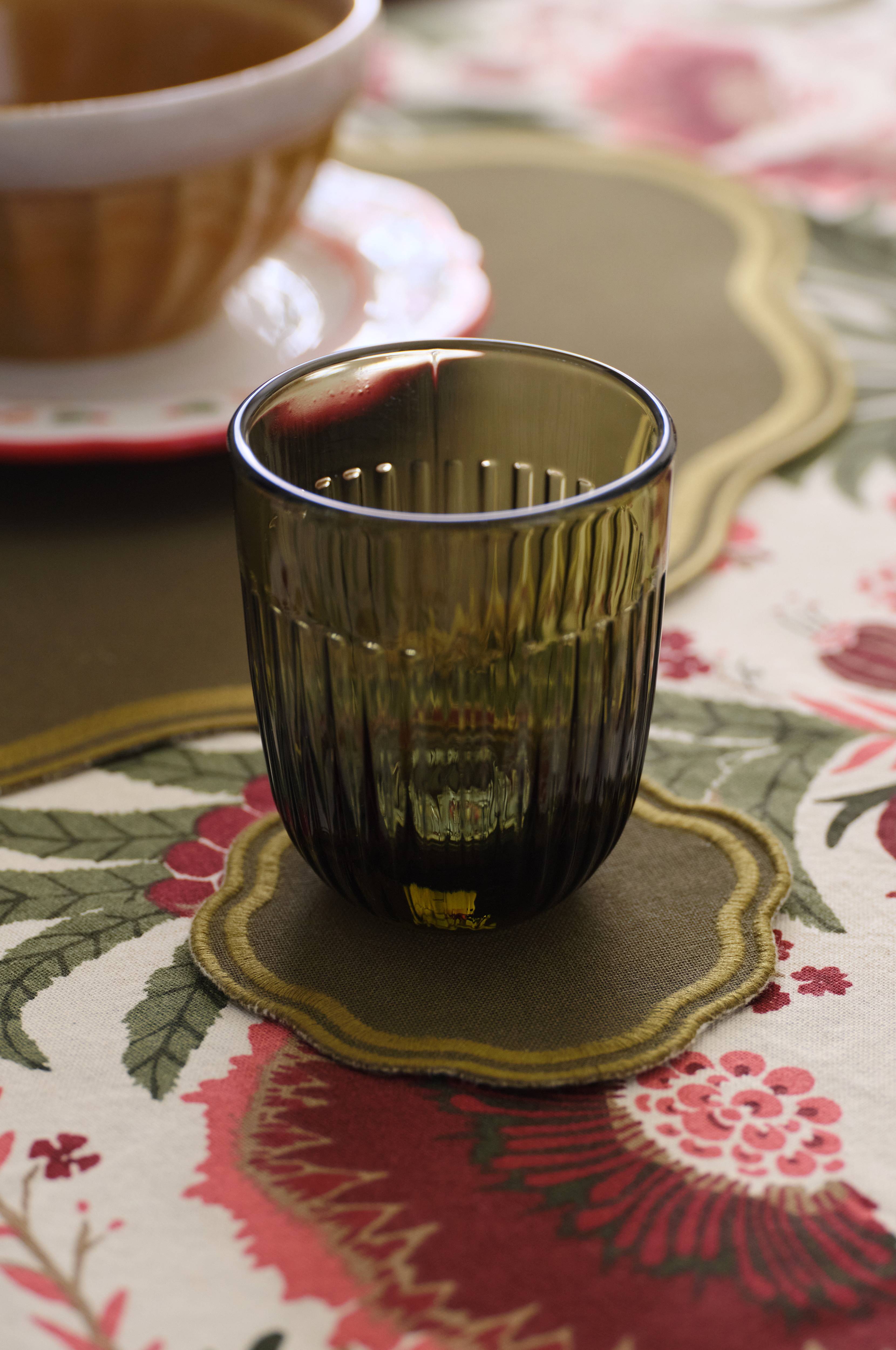 • Vevd, rutete bordskåner med dobbelt lag stoff med fusingpapir i midten.• Broderi rundt