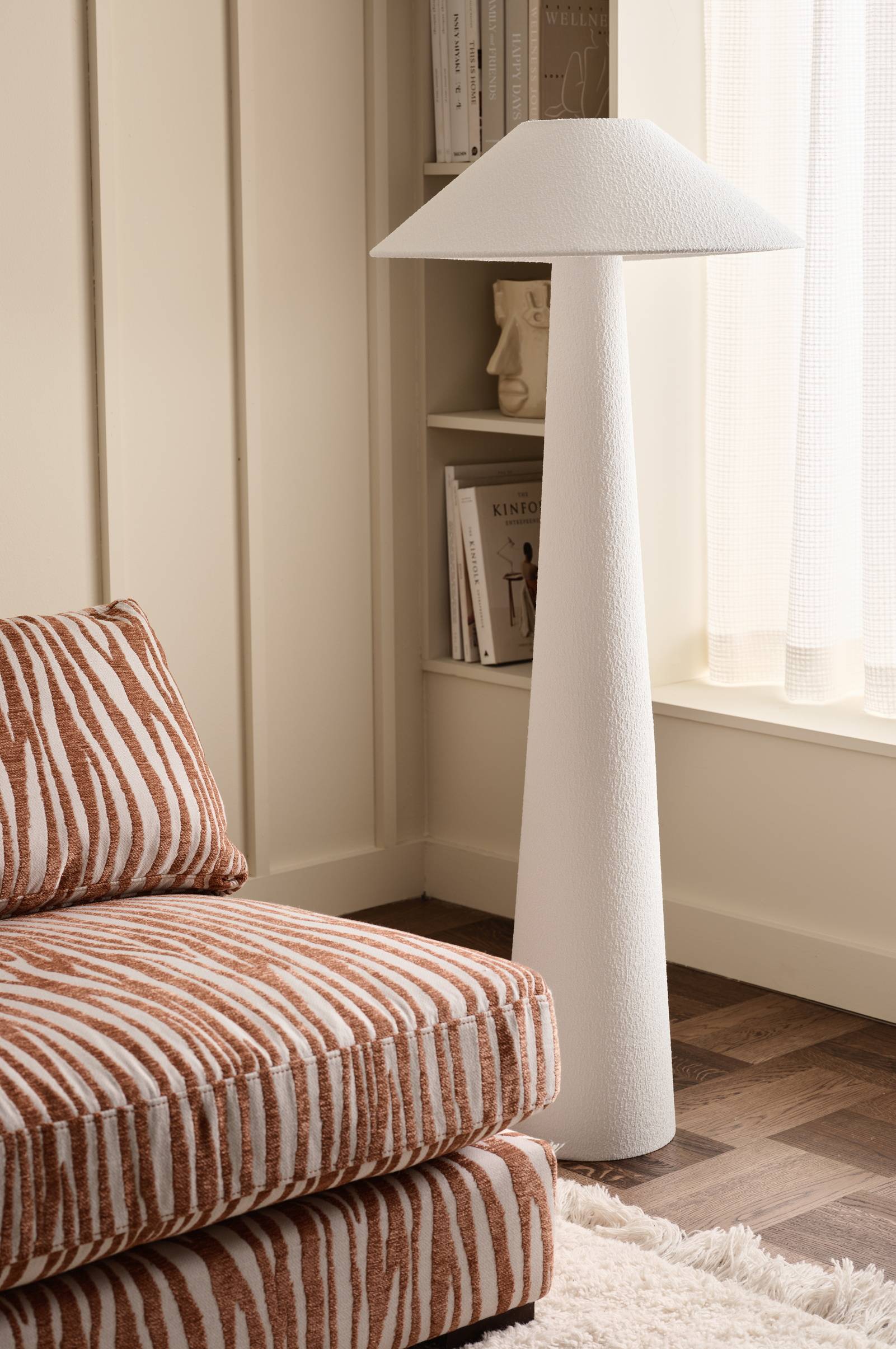 • Gulvlampe i Bouclé-stoff• Diameter på lampesokkelen: 22 cm• Høyde på lampefot: 108 cm• Diameter på lampeskjerm: 50 cm• Høyde på lampeskjerm: 22 cm• Lyspære er ikke inkludert