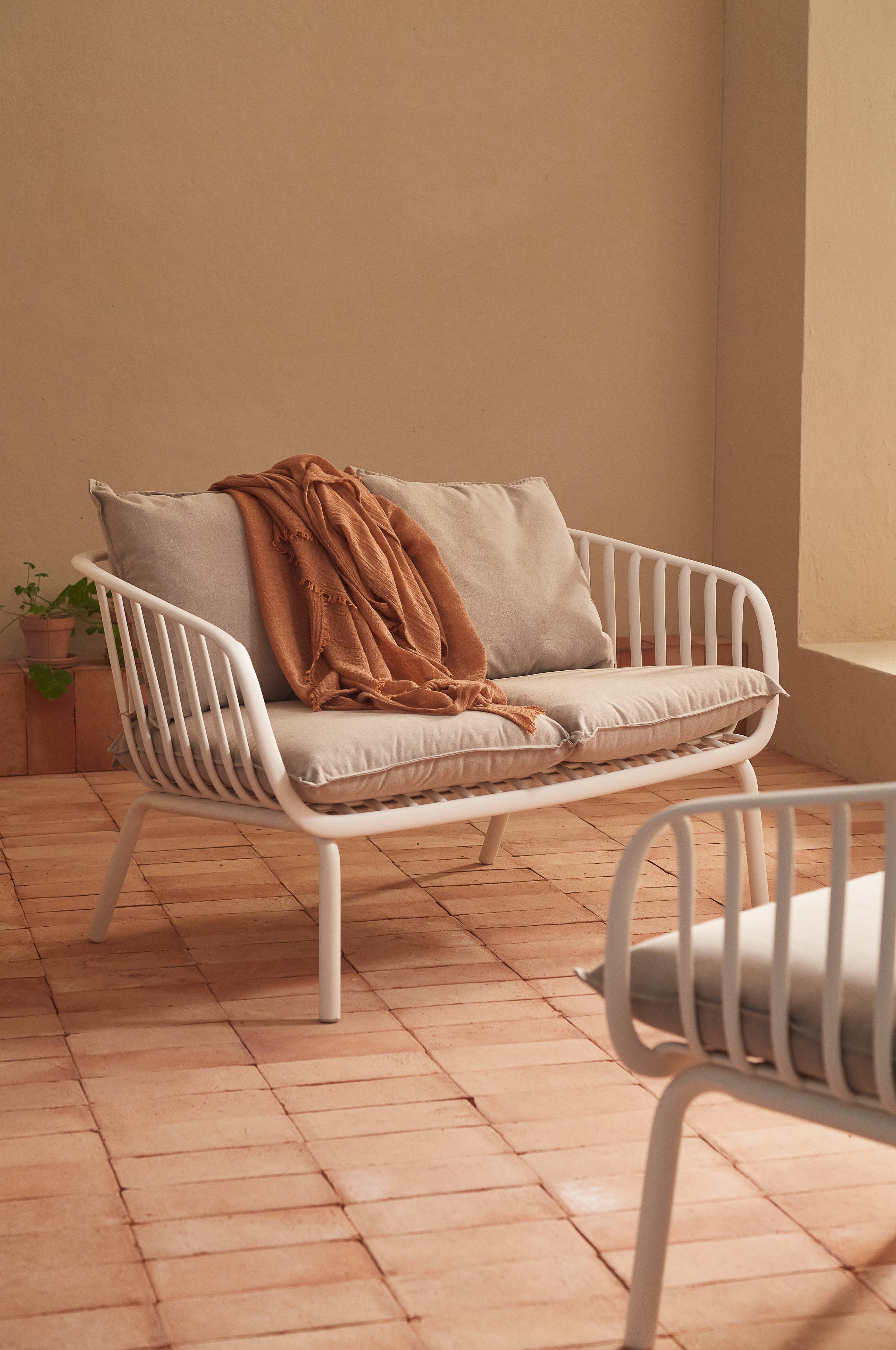 • Værbestandig hagesofa • Stamme i polypropylen • Bein i metall • To løse seteunderlag • To løse ryggputer • Avtagbar stopning med vannavstøtende belegg • Setebredde: 110 cm • Maks vekt: 260 kg • Vil du se nærmere på et stoff og kjenne på kvaliteten? Send oss en e-post på customerservice@ellos.no eller ring 66 99 75 00 for å bestille gratis stoffprøve! Oppgi artikkelnummeret som du finner nederst i denne beskrivelsen.