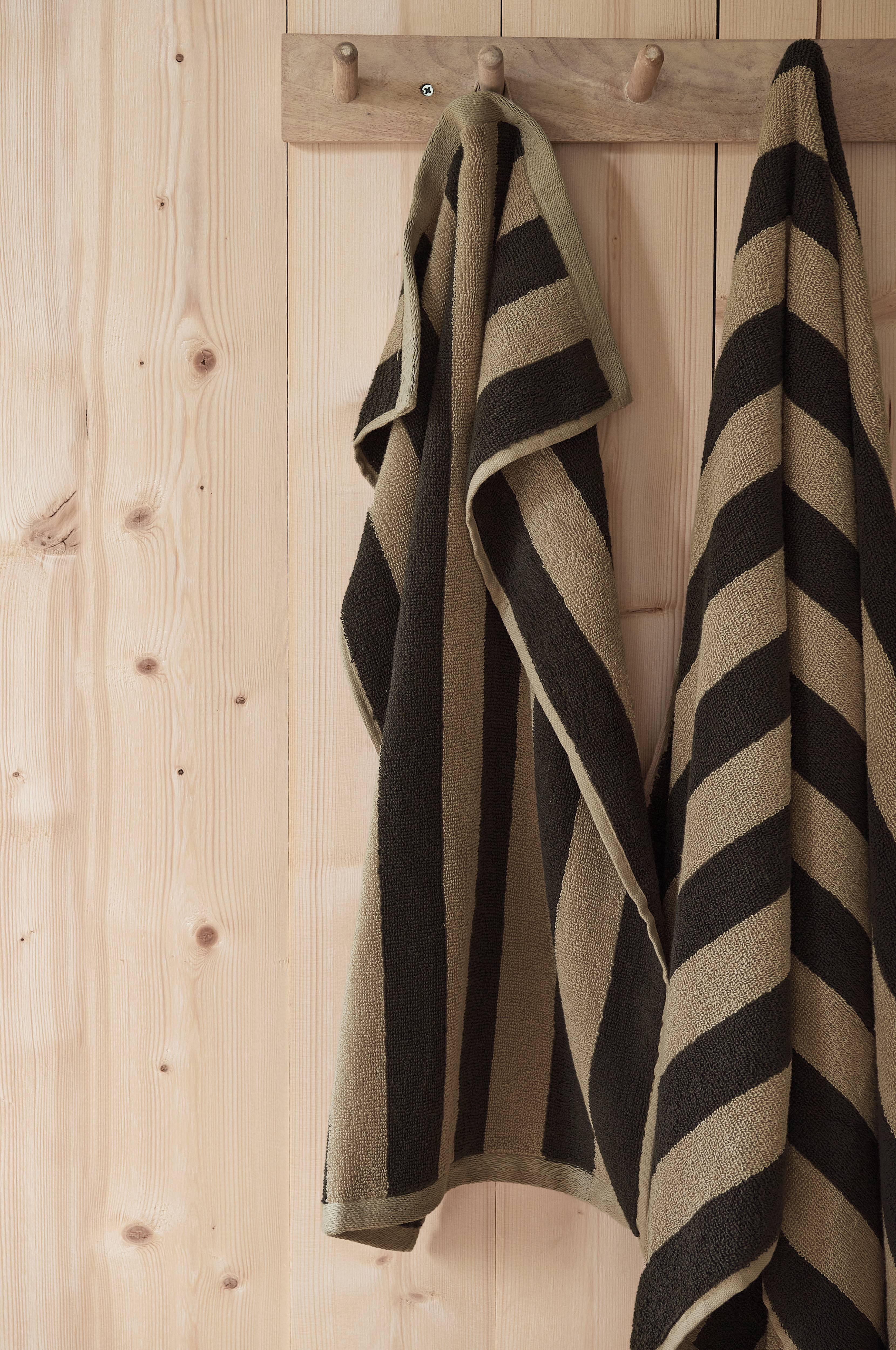 Håndkle i myk og deilig bomullsfrotté med garnfargede striper. Str 50x70 cm.