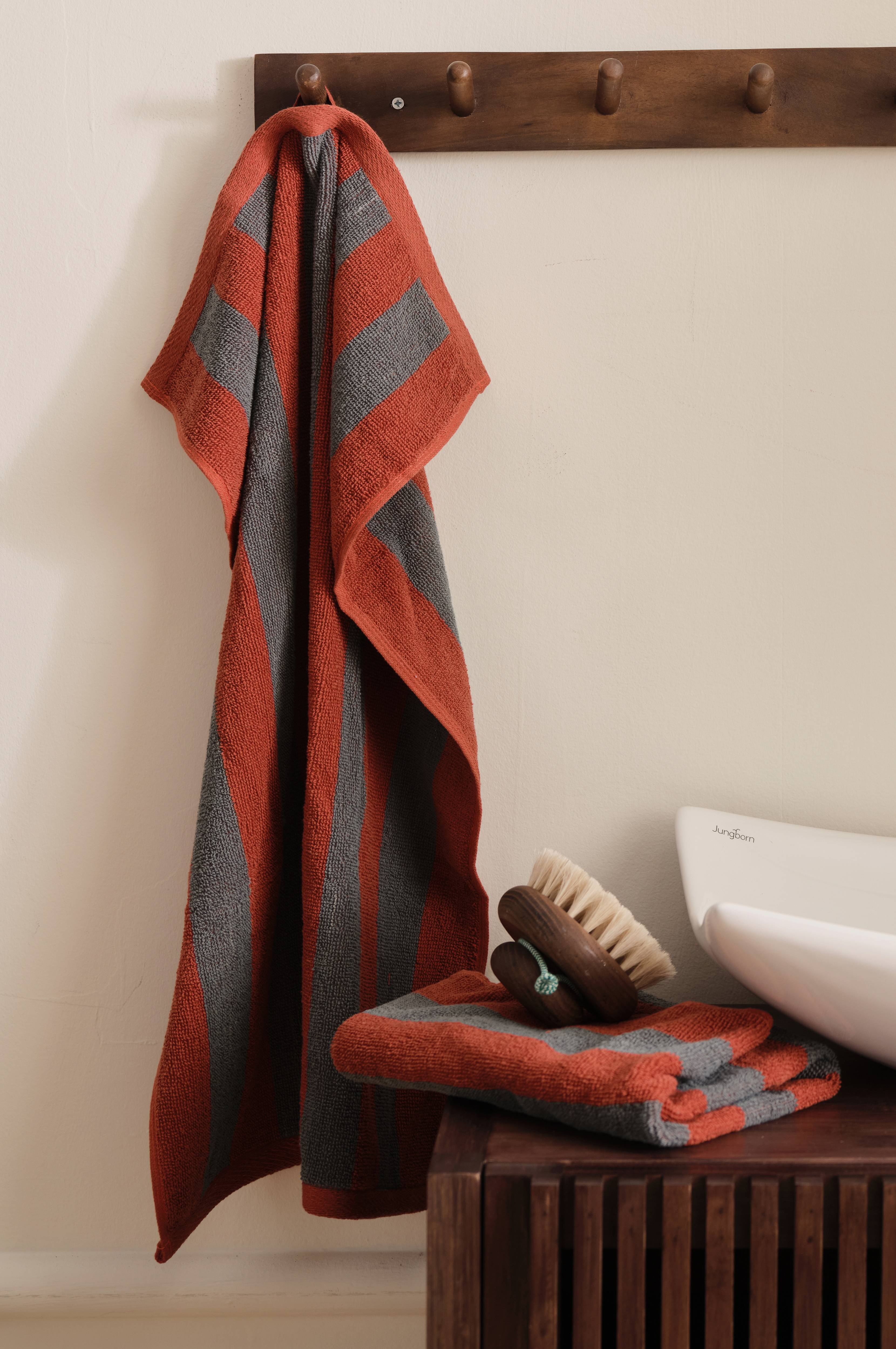 Håndkle i myk og deilig bomullsfrotté med garnfargede striper. Str 50x70 cm.