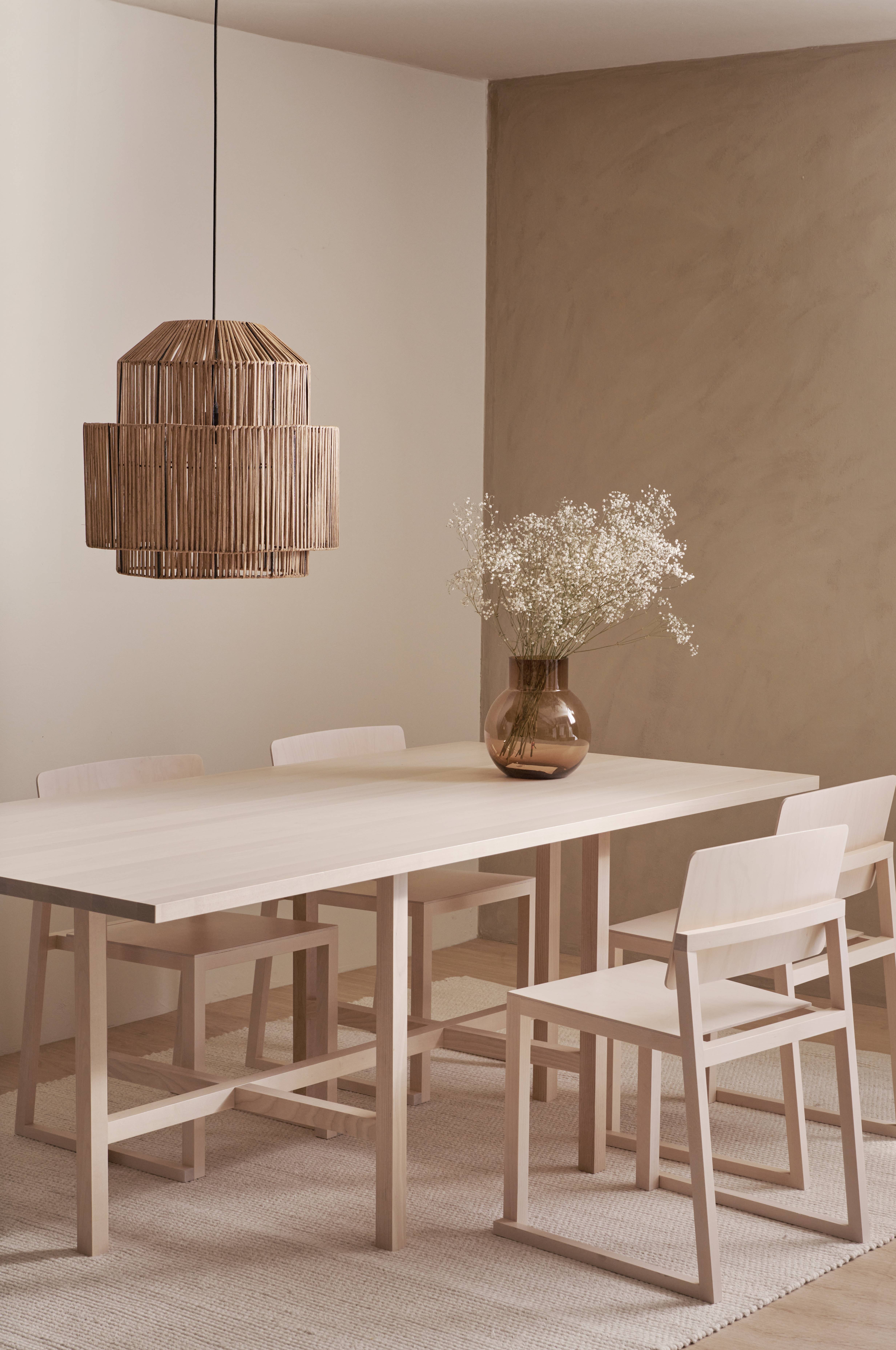 Svenskprodusert spisebord av bjørk med svidd stempel på undersiden av bordet.