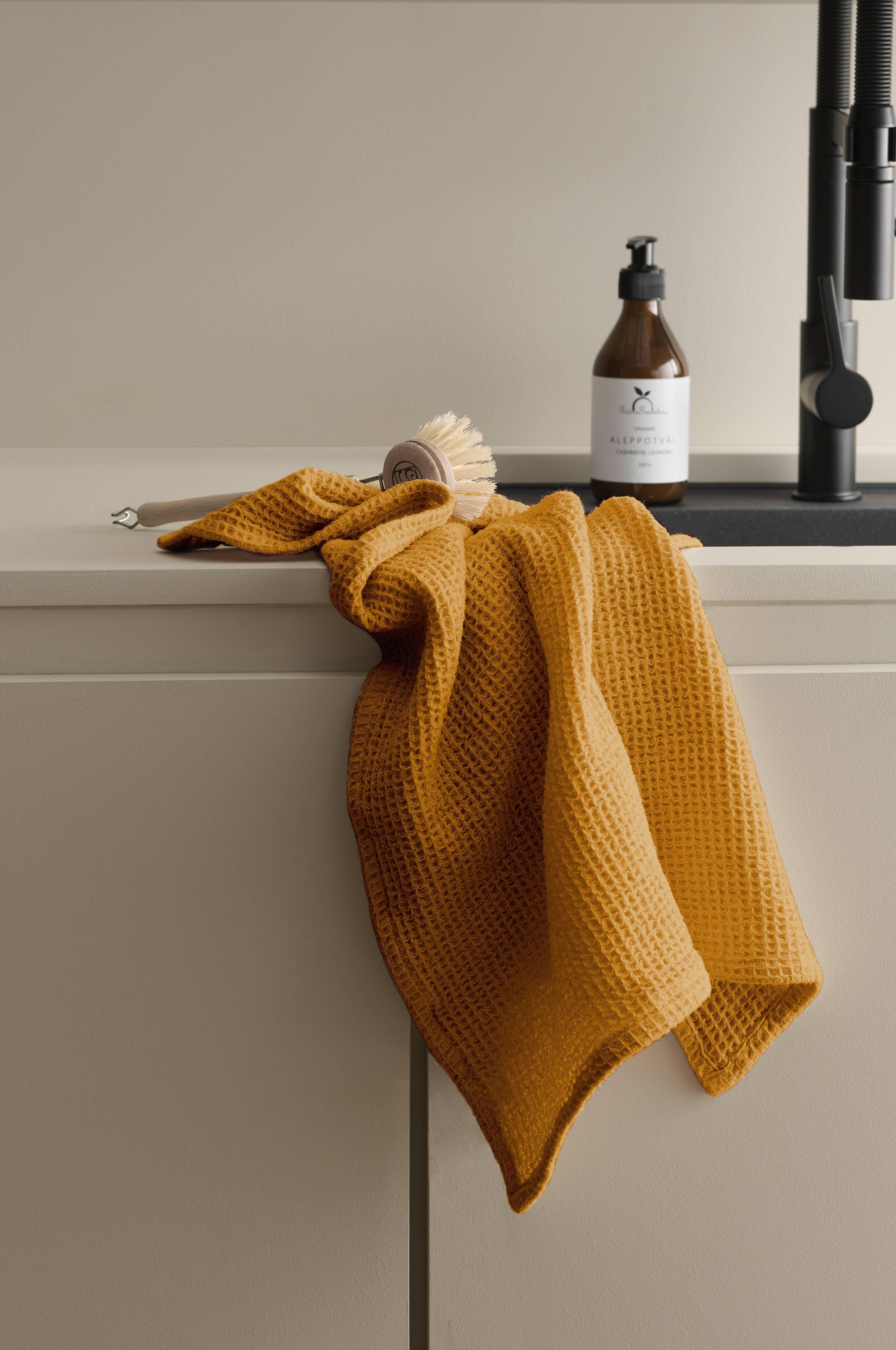 Kjøkkenhåndkle i økologisk bomull med vaffelmønster.