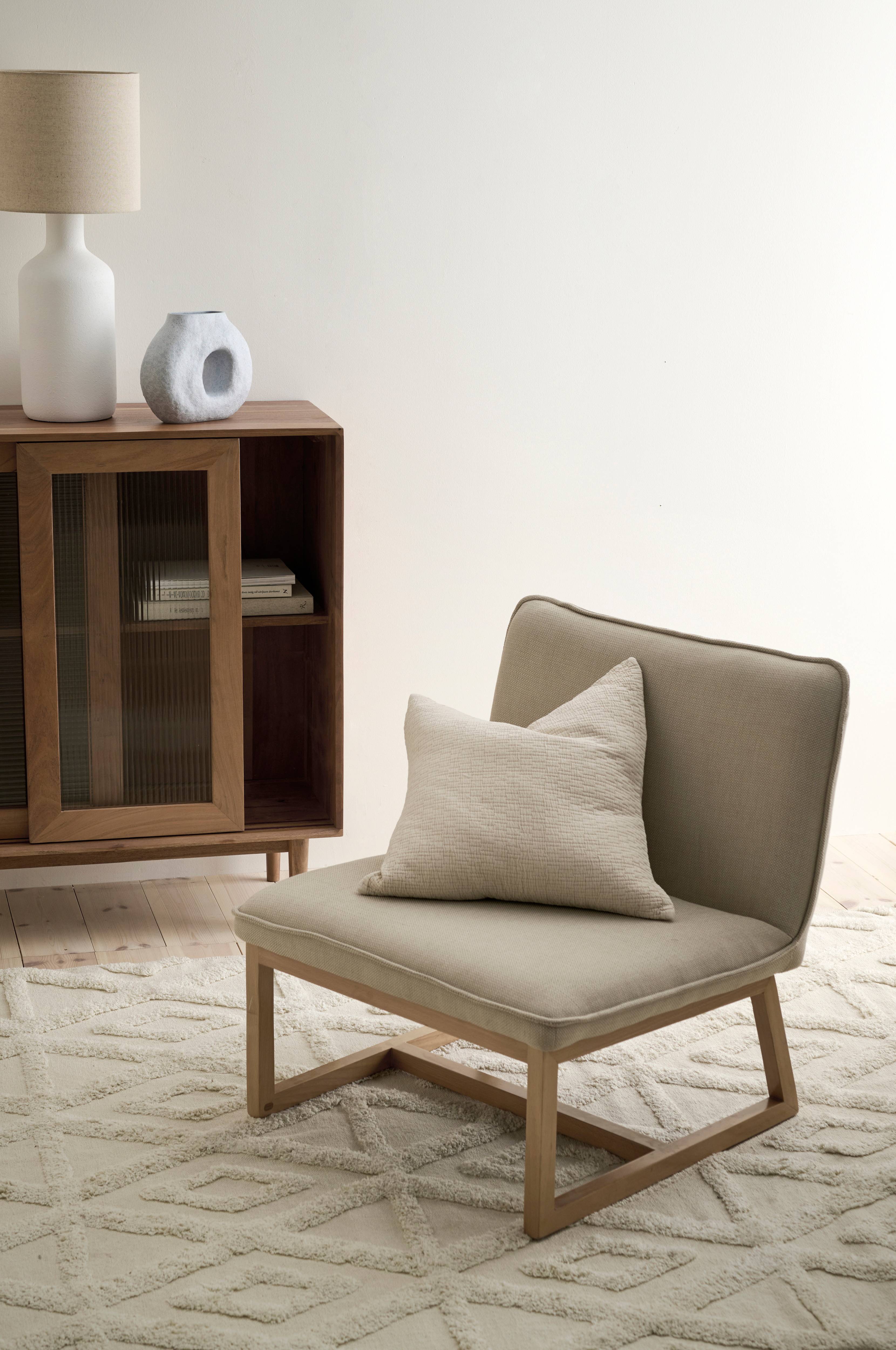 Lenestol i stilren look med ben og stamme av massiv ask. Trekk i stoff av polyester. Fyll av polyeterskum. Enkel montering.