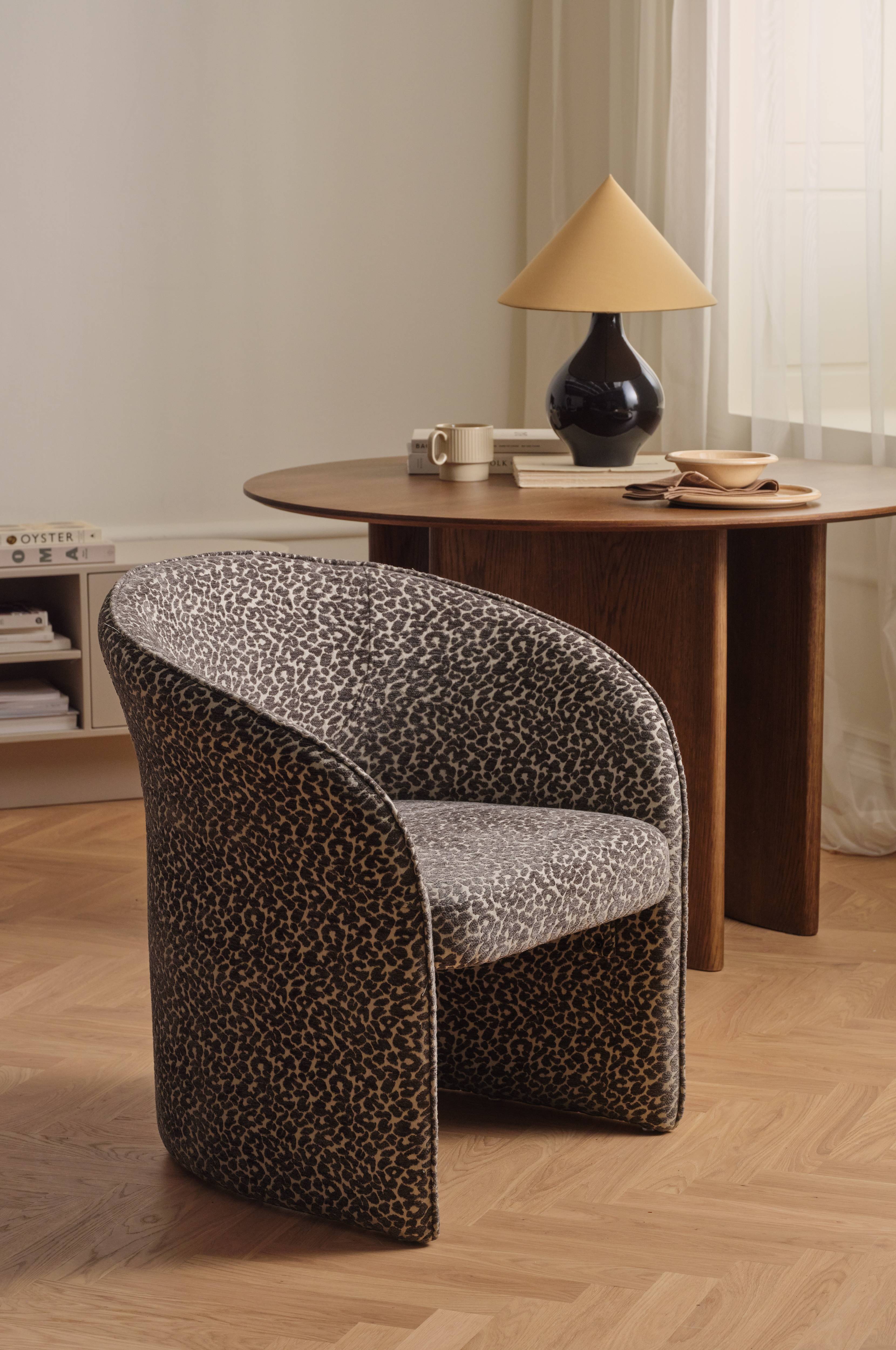 • Lenestol med stopning i leopardmønstret chenille