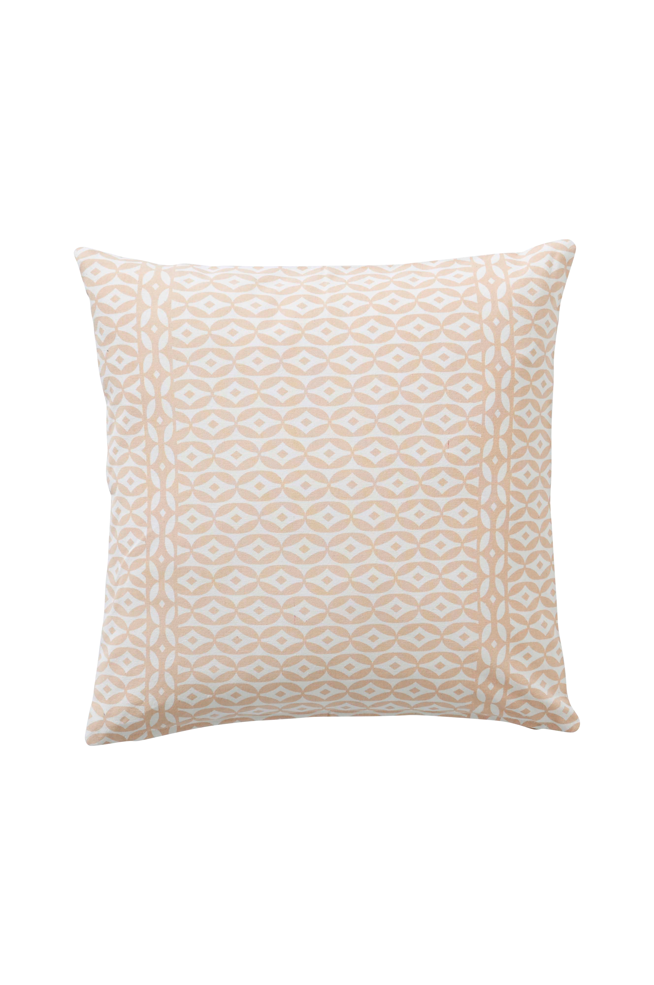 Putetrekk i bomull med trykt mønster på frem- og baksiden. Skjult glidelås i bunn. Str 50x50 cm.