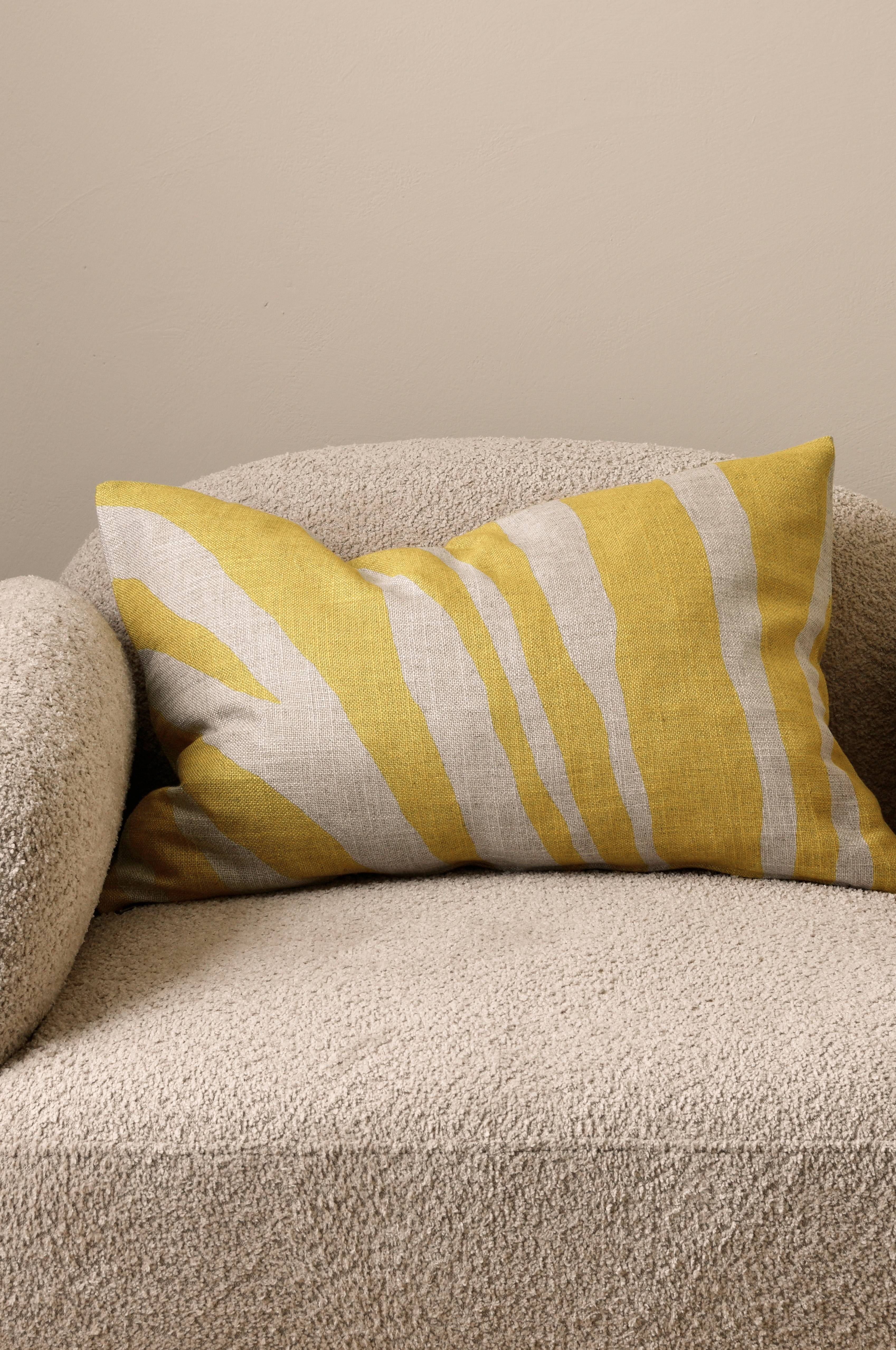 Putetrekk i en blanding av viskose og lin med trykt mønster på for- og bakside. Metallglidelås i bunnen.