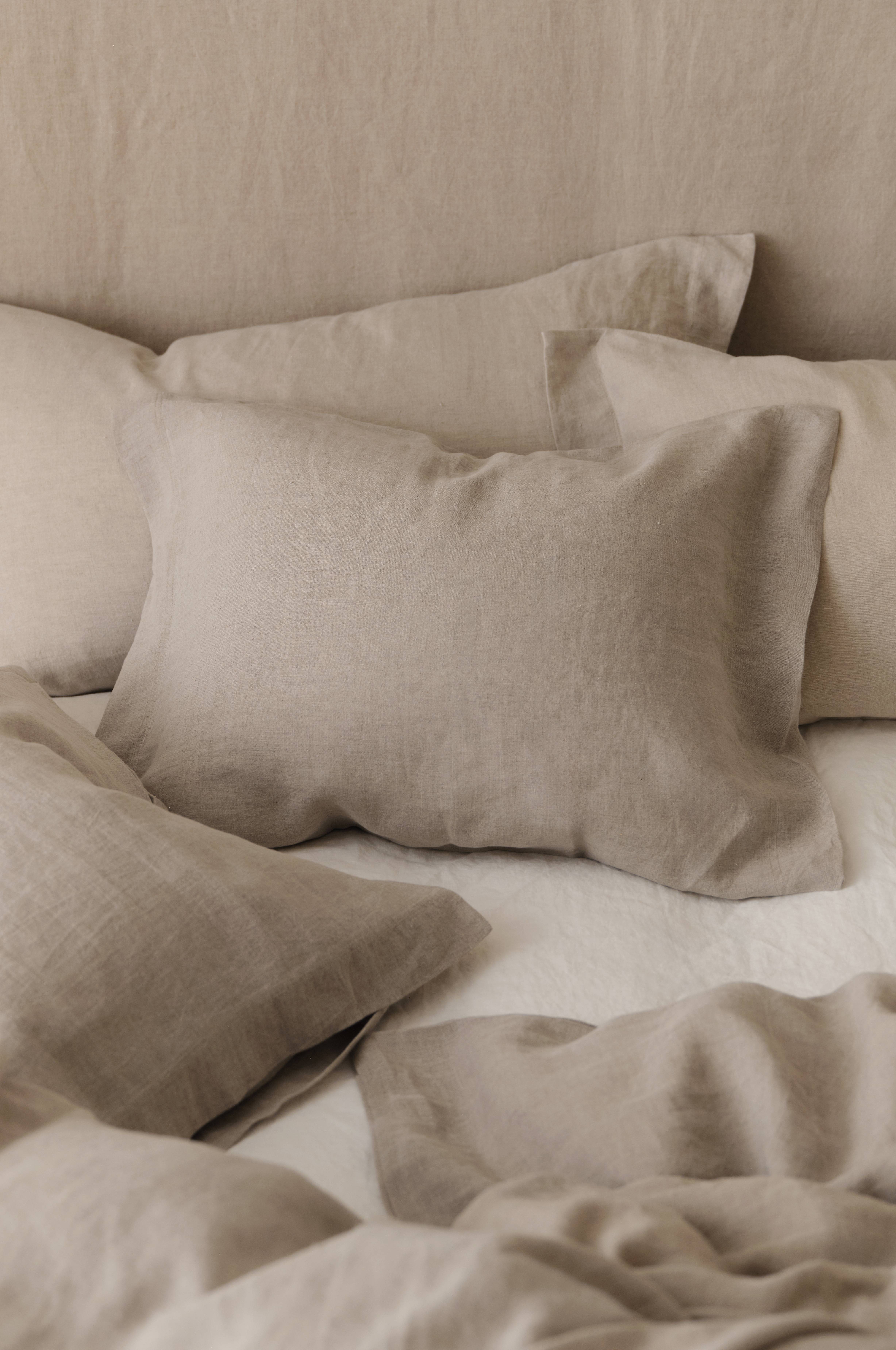 Putevar i myk og sval vasket linkvalitet, av fransk lin. Str 50x60 cm + 5 cm vinge langs kortsidene. Vekt 165 g/m2.