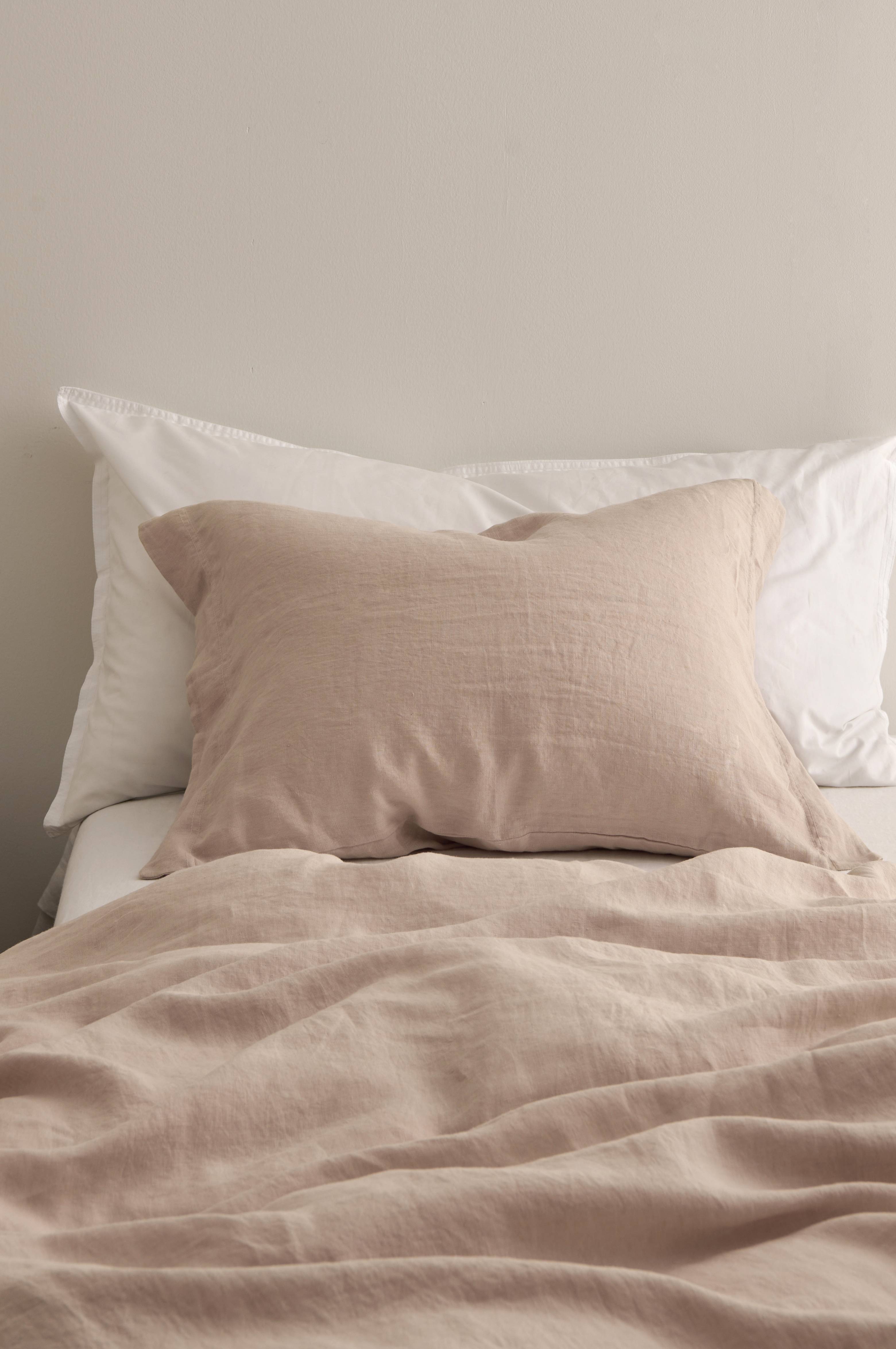Putevar i myk og sval vasket linkvalitet, av fransk lin. Str 50x60 cm + 5 cm vinge langs kortsidene. Vekt 165 g/m2.