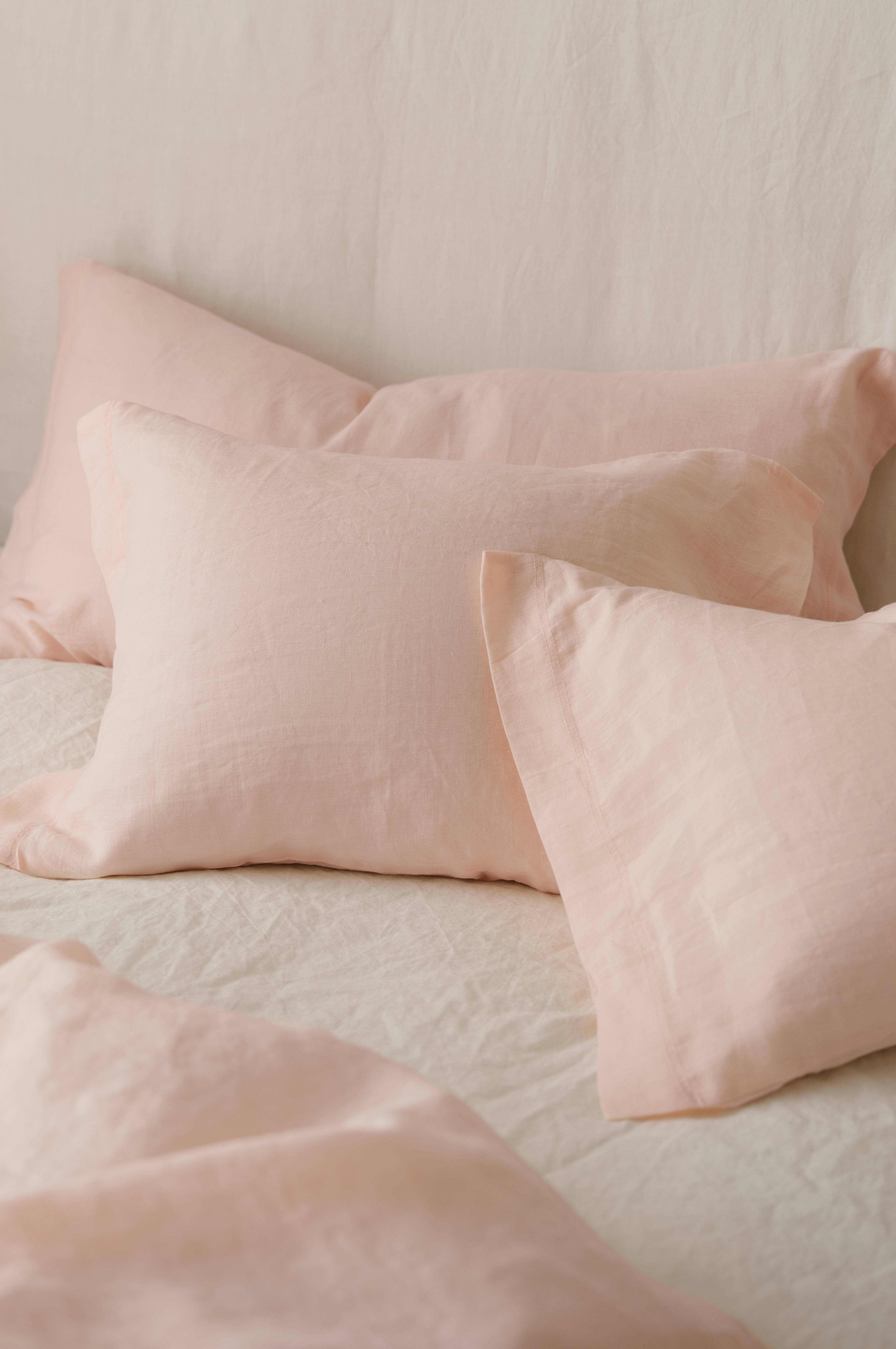 Putevar i myk og sval vasket linkvalitet, av fransk lin. Str 50x60 cm + 5 cm vinge langs kortsidene. Vekt 165 g/m2.