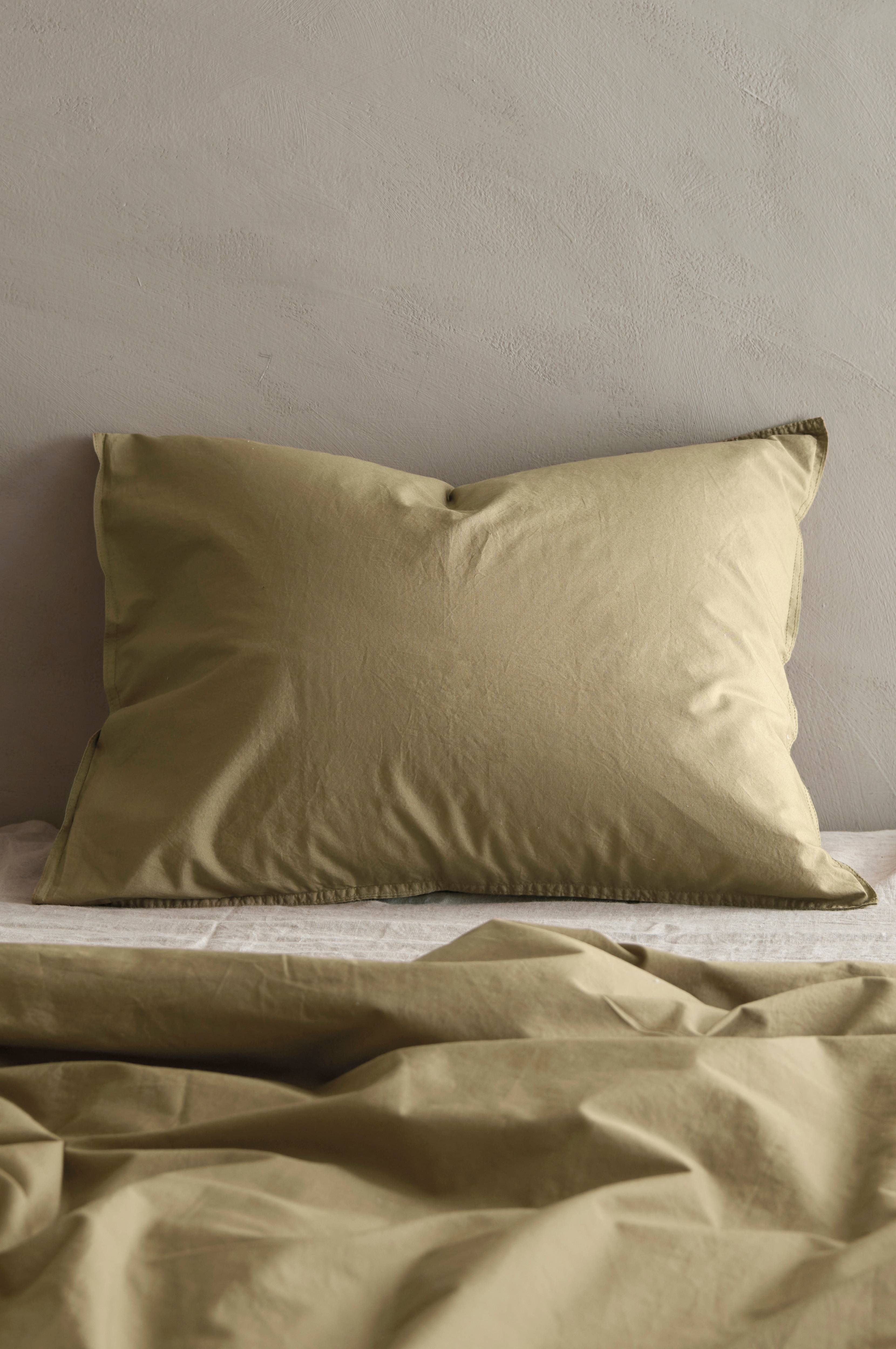 Putevar i vasket bomullspercale med doble jeanssømmer rundt. Trådtetthet 200 tc. Putevaret leveres i en stoffveske i samme kvalitet. Str 50x60 cm.