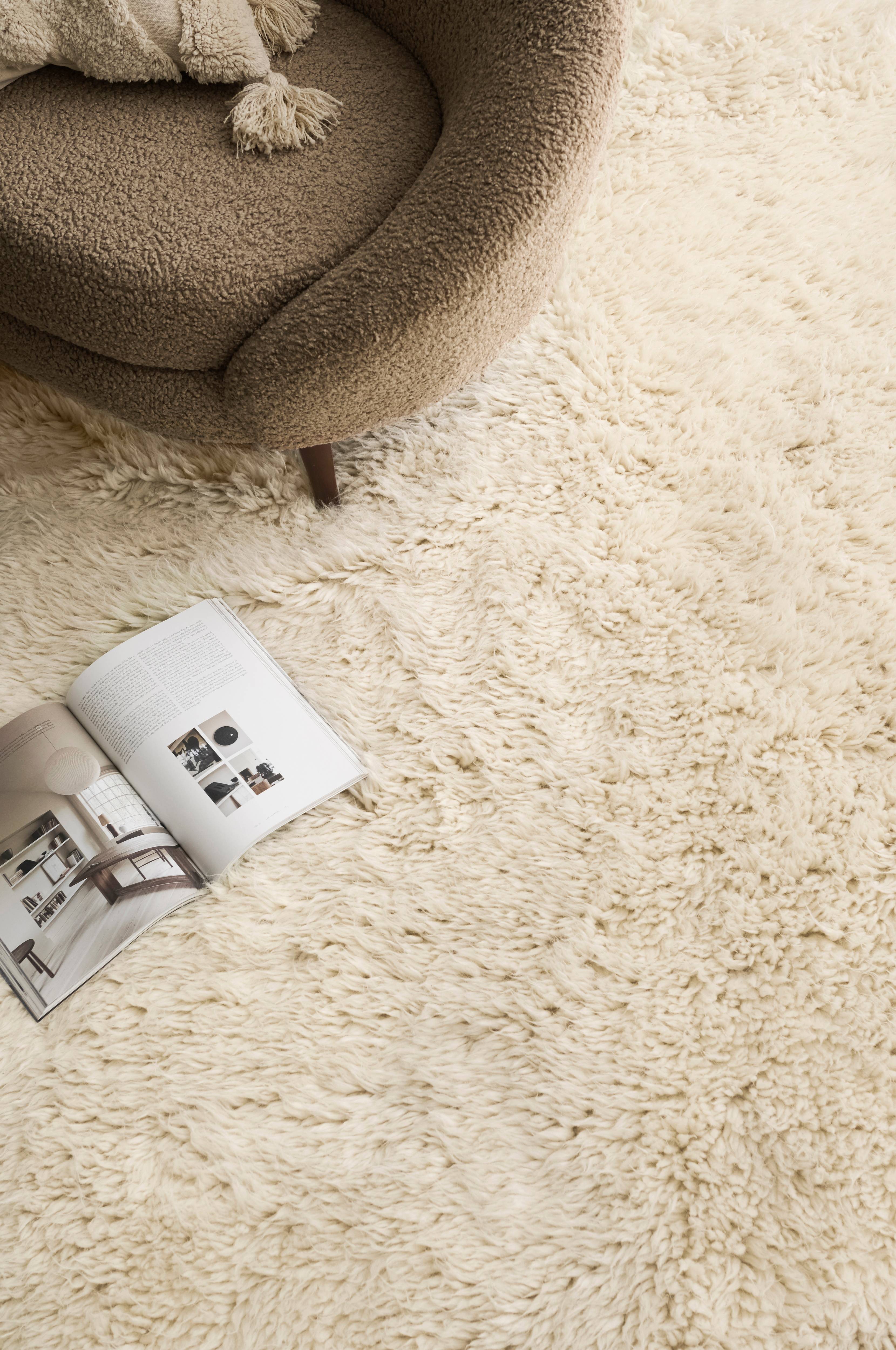 Tuftet flossteppe i myk, vasket ull med samme utseende og følelse som de klassiske, greske flokati-teppene.