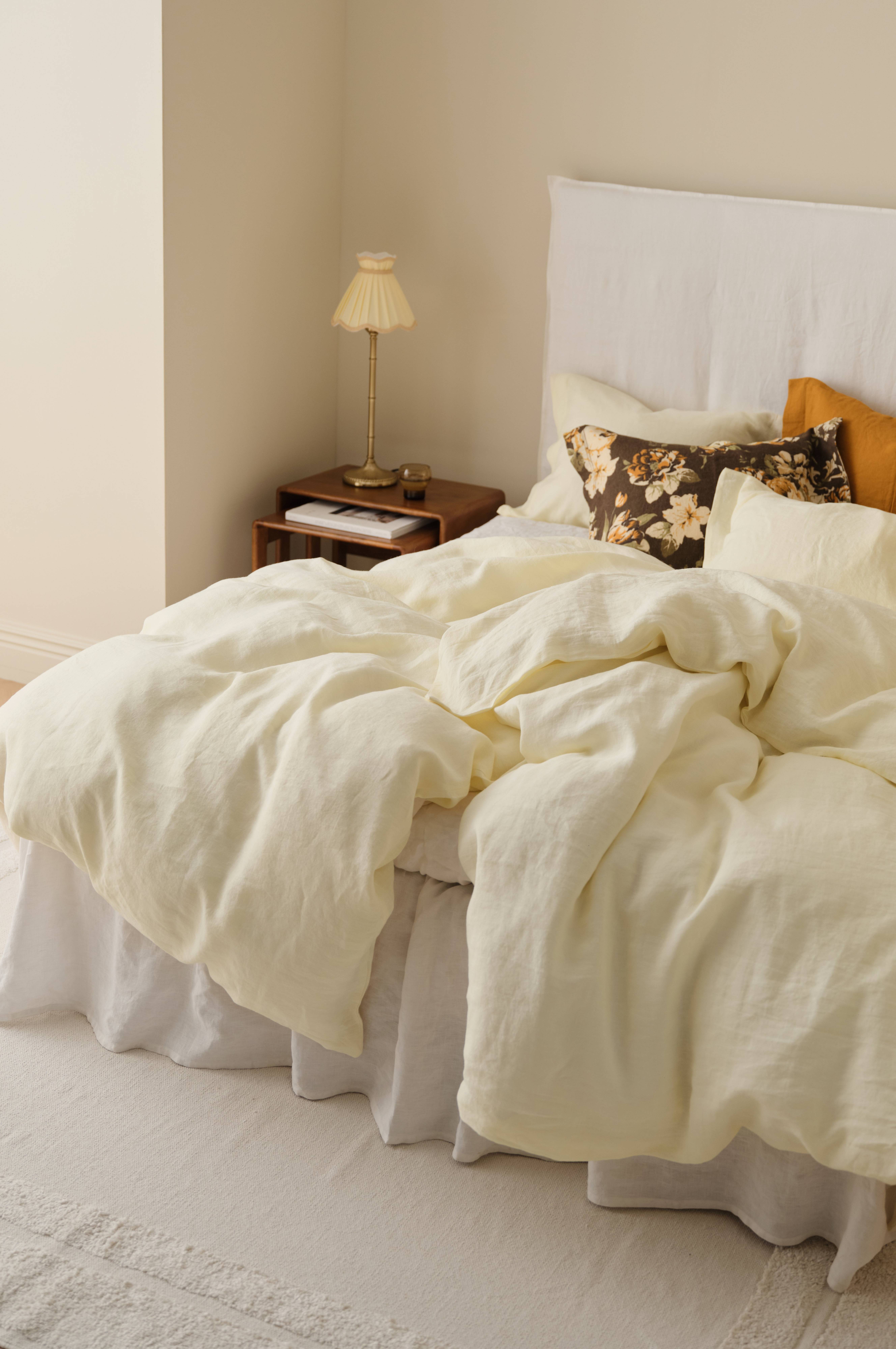 Vakker trendfarge. Vasket lin blir bedre med bruk. Pustende, lett materiale. Dunkdynens beste venn for god søvn