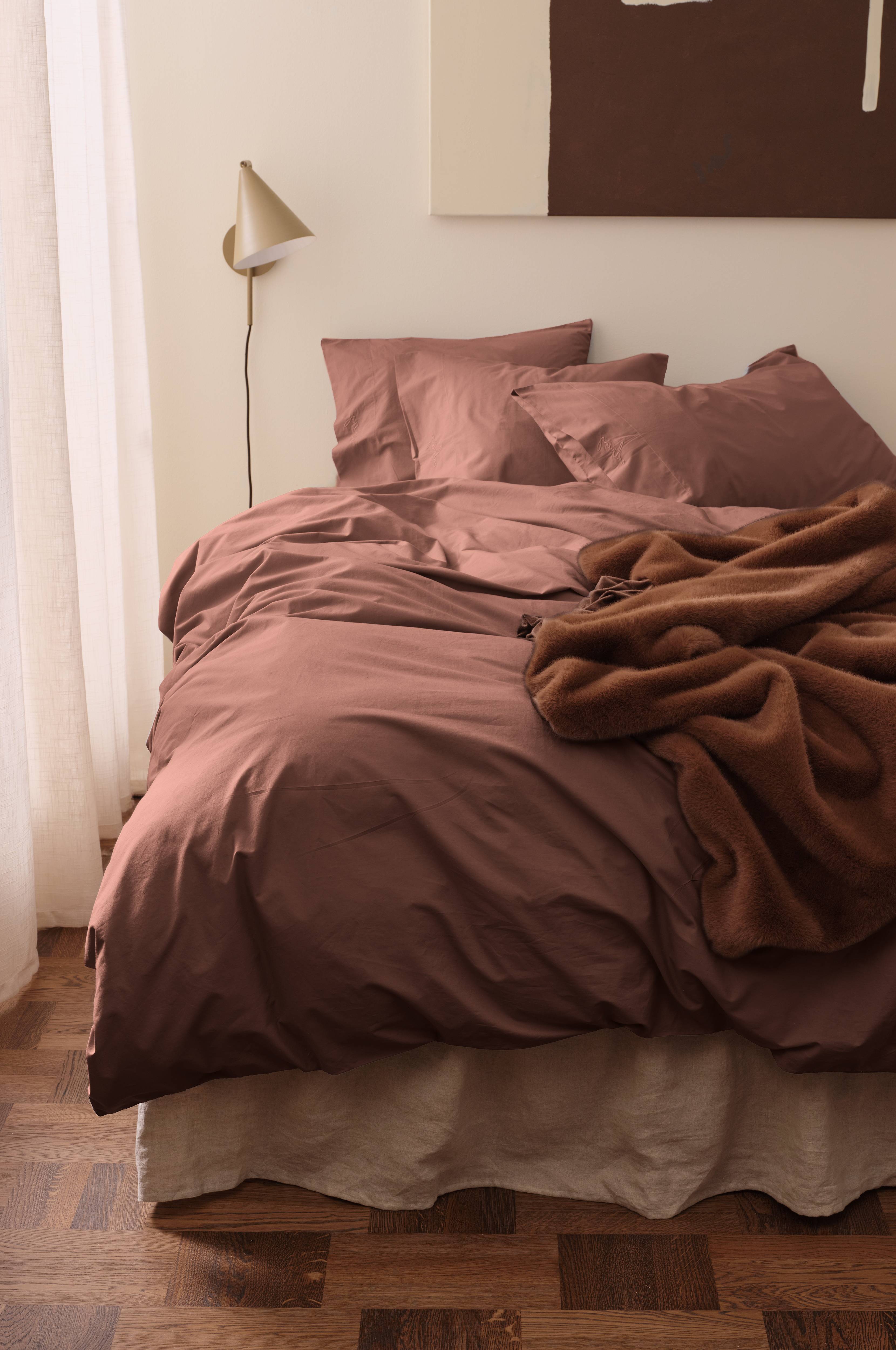 • Sengesett i økologisk bomullspercale • Trykknapper nederst på dynetrekket • Både dynetrekk og putetrekk har dekorative sømmer på den ene siden • Broderi nederst på putetrekket • Percale er en luksuriøs, tettvevd kvalitet i finkjemmet bomull med glatt overflate og sval, myk følelse. • Ingen håndhull • Trådtelling: 180 TC • 2-delt sett: 1 dynetrekk 150x210 cm (til enkeltdyne) med 1 putevar 50x60 cm 3-delt sett: 1 dynetrekk 240x220 cm (til dobbeltdyne) med 2 putevar 50x60 cm