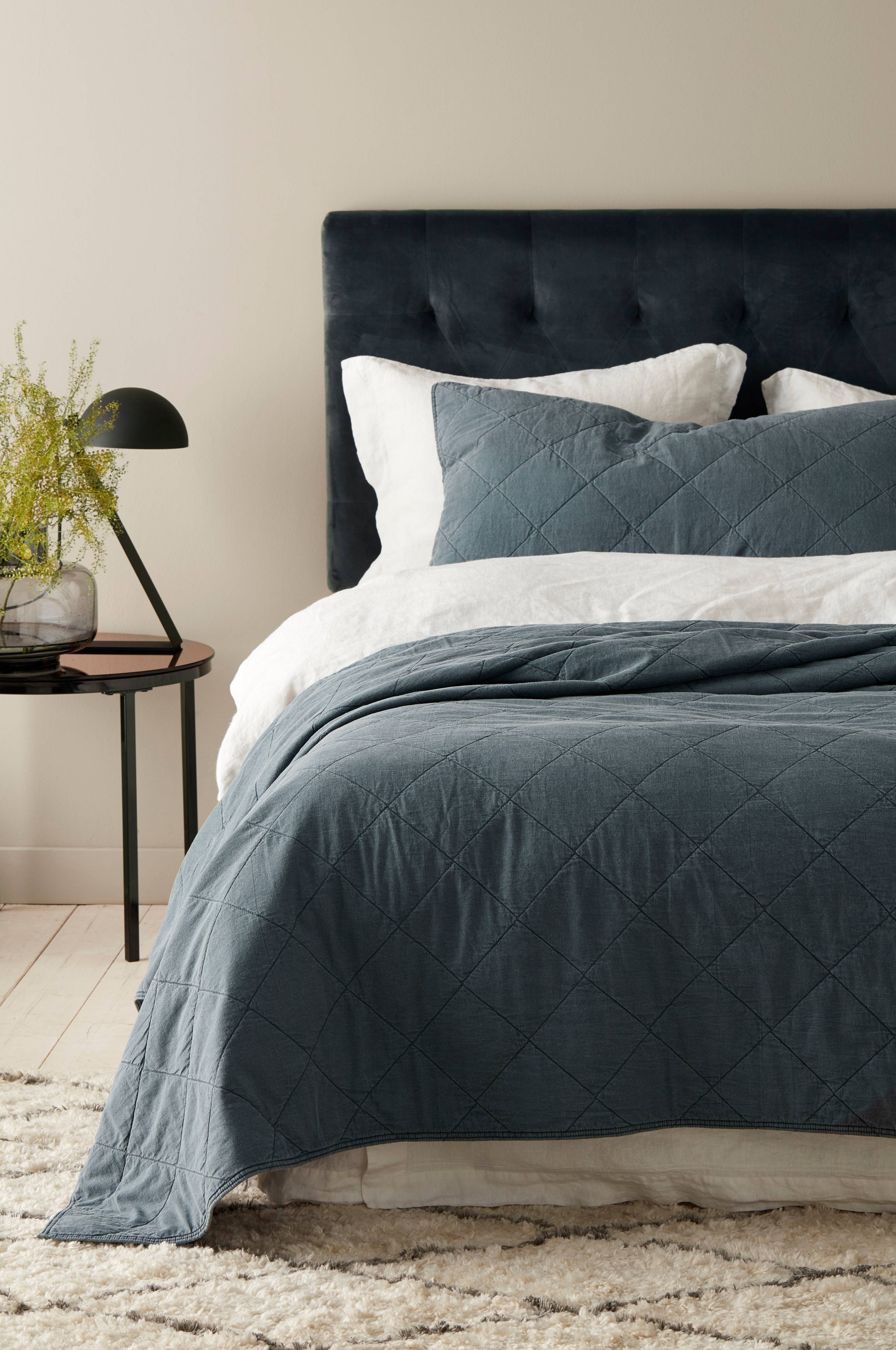 Quiltet sengeteppe i vintagevasket økologisk bomull.