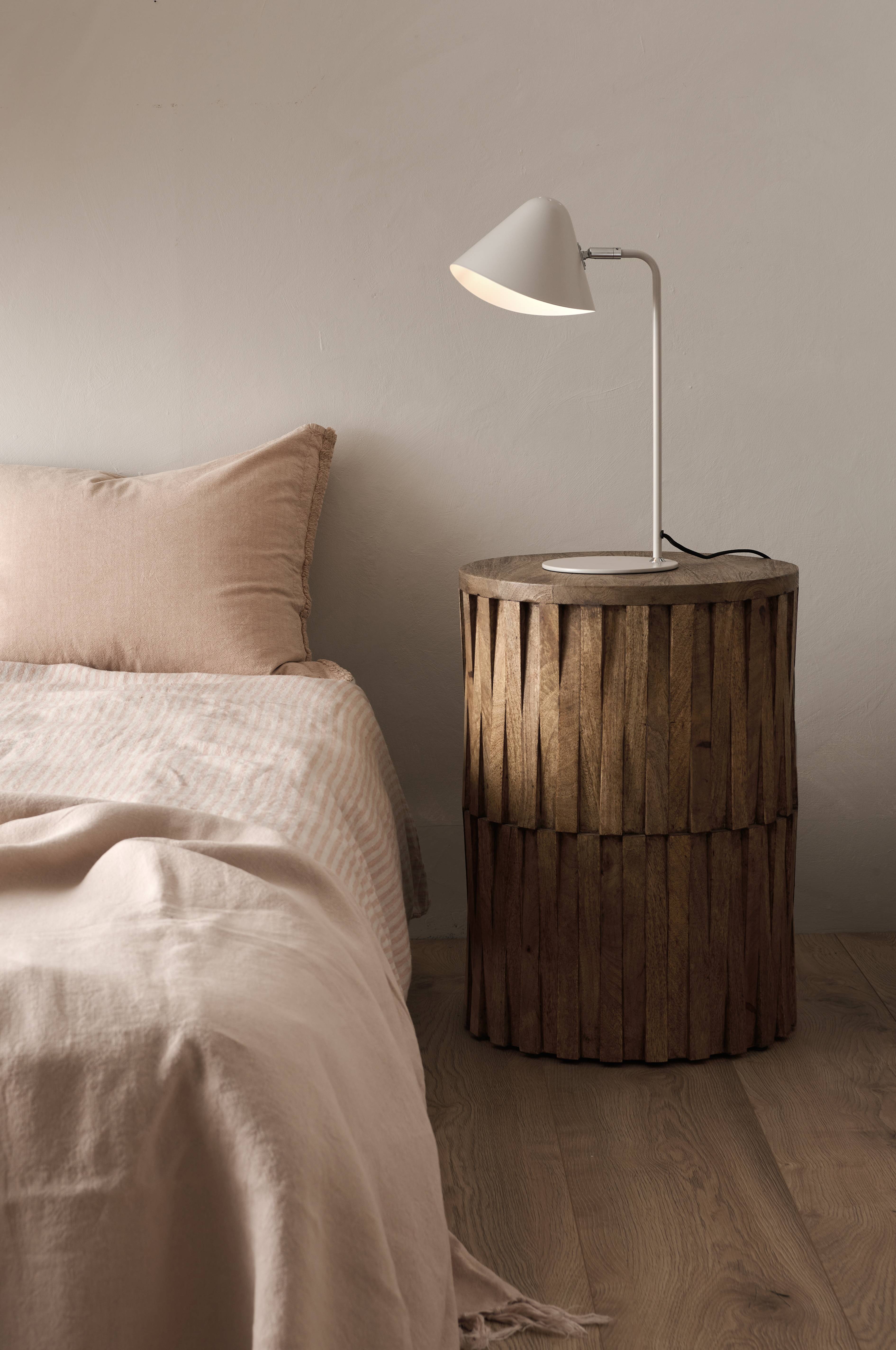 Rundt sidebord i mangotre med uregelmessig, ribbet tekstur på siden som gir et håndlaget inntrykk. Leveres montert.