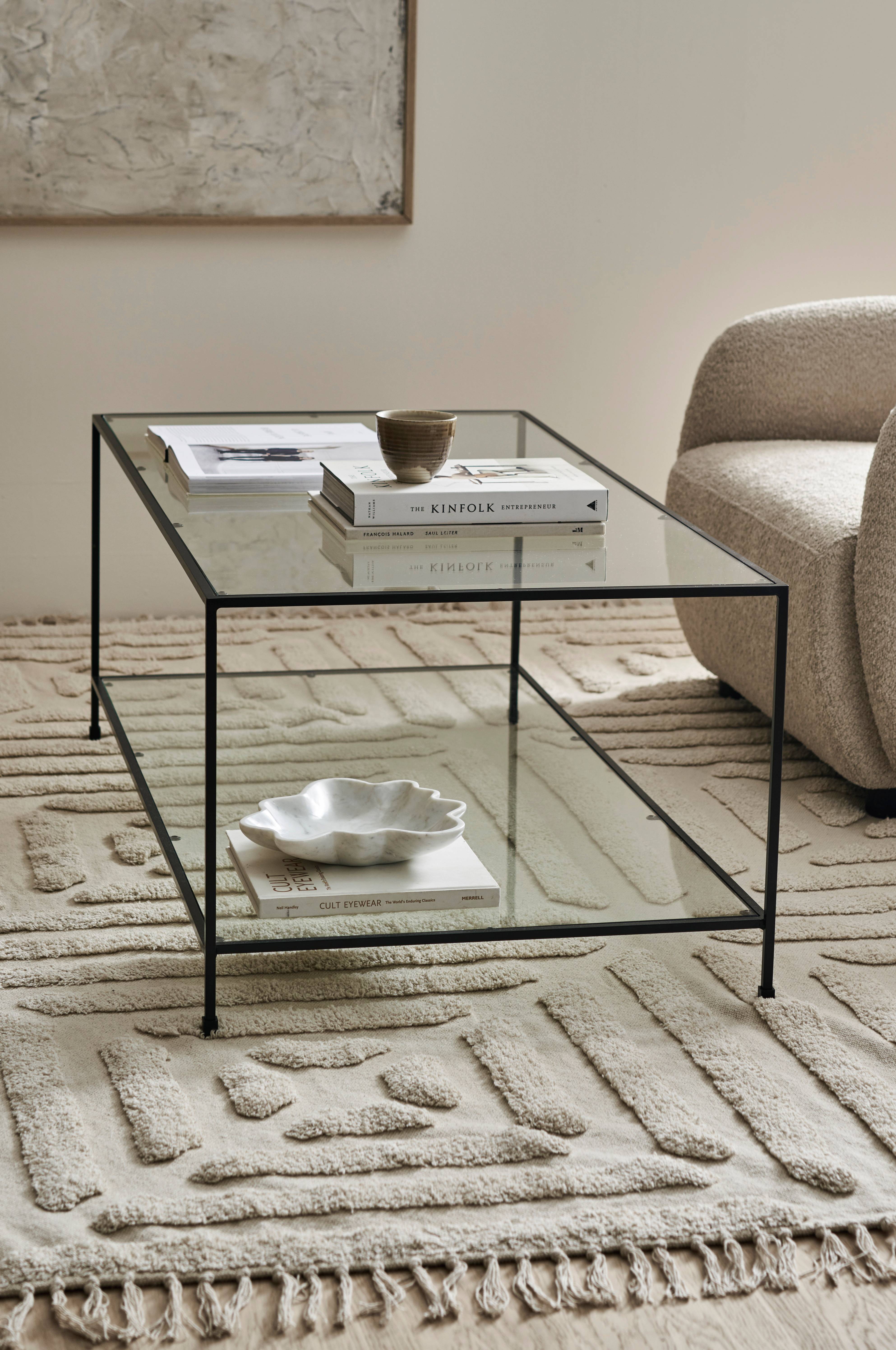Vennligst fest det svarte salongbordet med klare glassskiver!