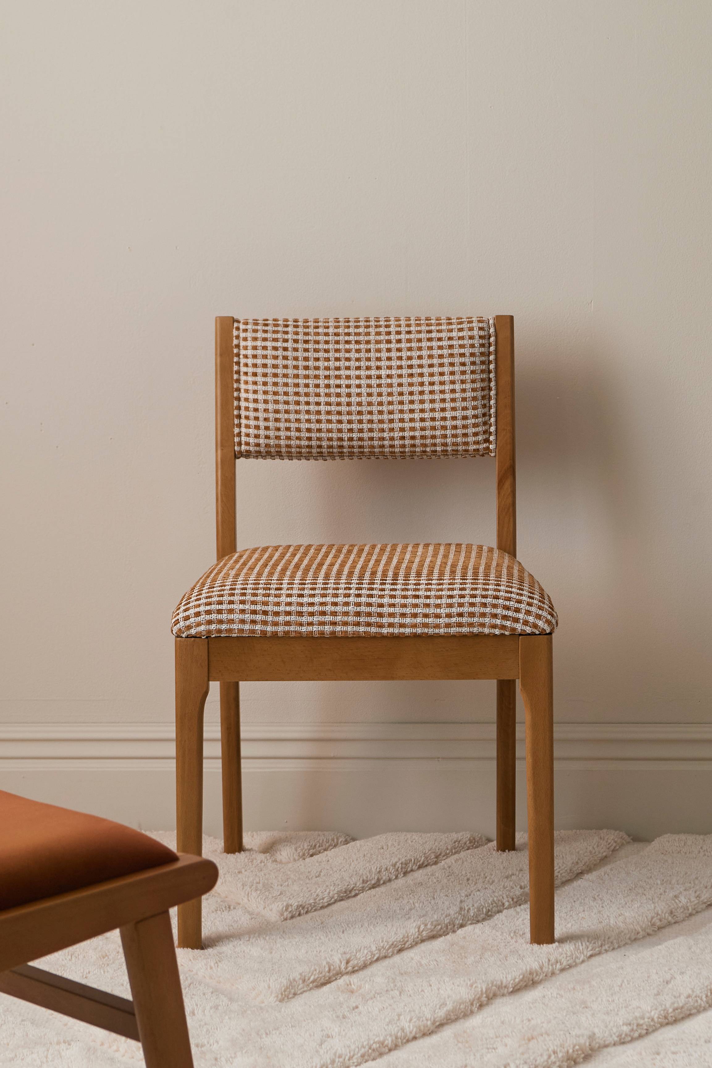 • Stol i massiv bøk • Vevd, rutete stopning i setet og på ryggen • Skumfylling • Setebredde: 50 cm • Maks vekt: 100 kg • Vil du se nærmere på et stoff og kjenne på kvaliteten? Send oss en e-post på customerservice@ellos.no eller ring 66 99 75 00 for å bestille gratis stoffprøve! Oppgi artikkelnummeret som du finner nederst i denne beskrivelsen. • Produktet inneholder FSC-sertifisert tre som er felt gjennom et ansvarlig skogbruk som tar hensyn til både mennesker og miljø.