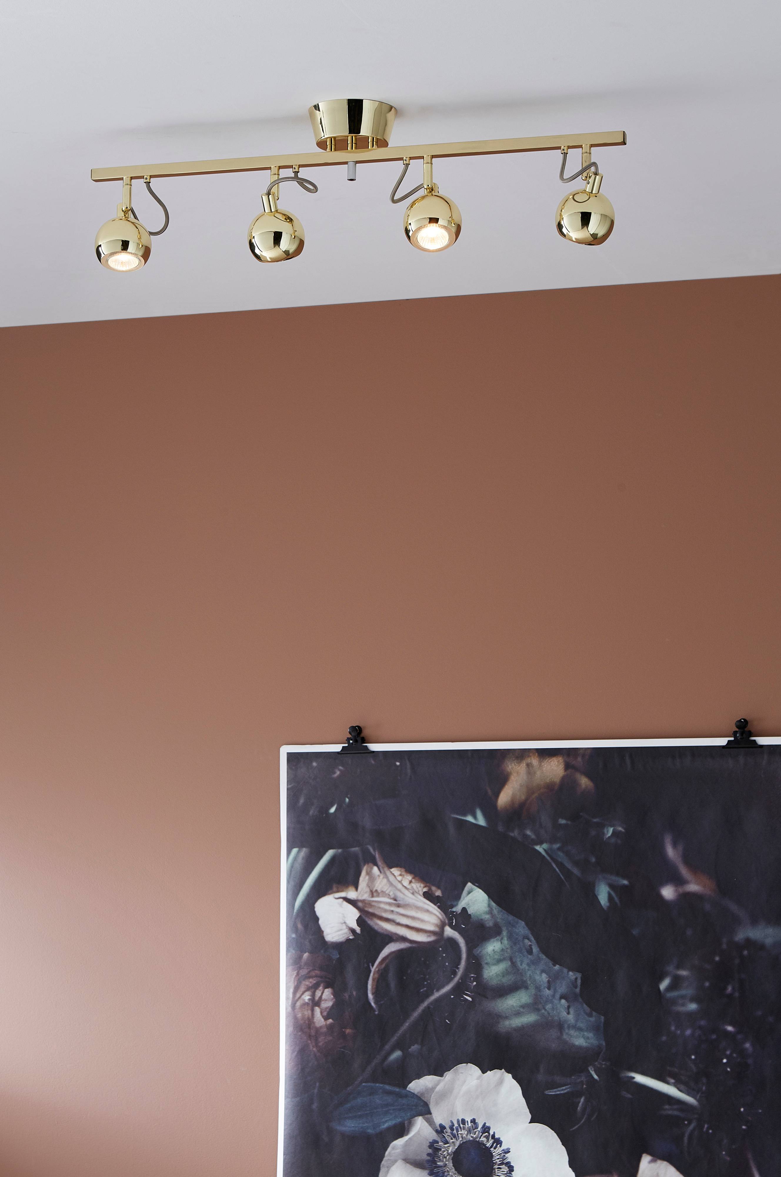Av malt metall. Lengde 77 cm. 4xGU10 maks 35W. Pærer inngår ikke.