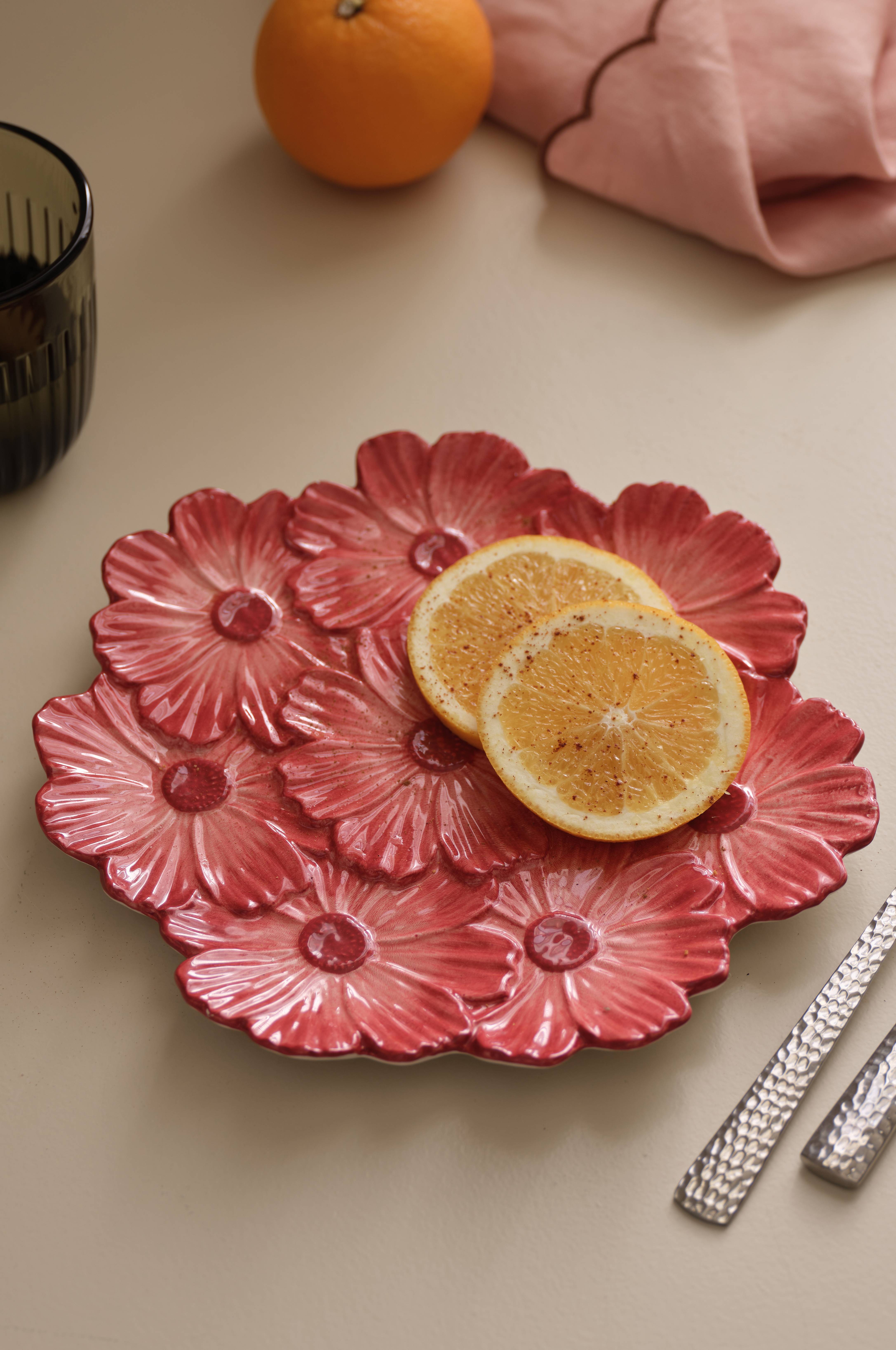 • Tallerken i glasert kjeramikk med håndmalt finish