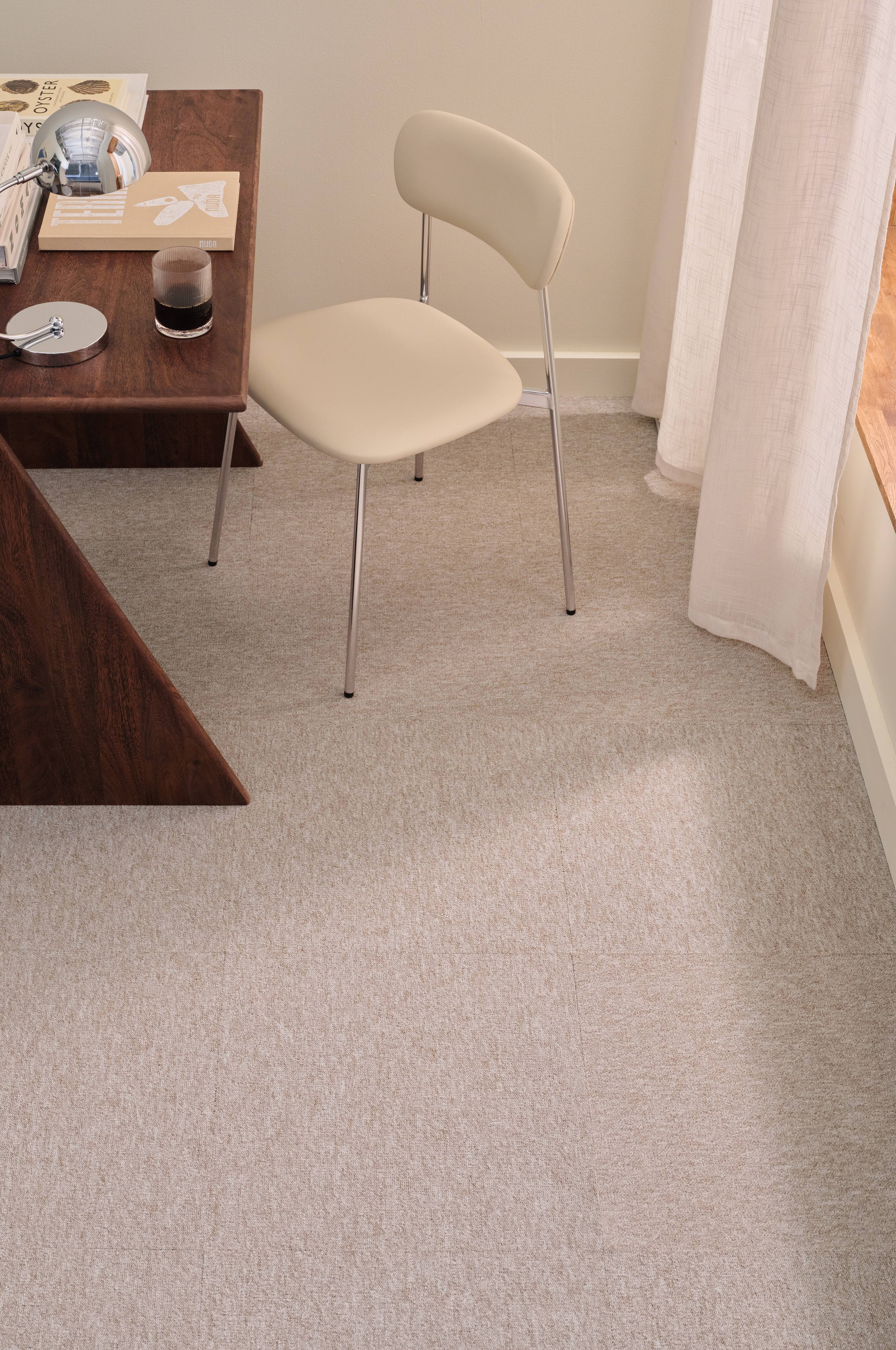Tekstilfliser som legges som et teppe med dobbeltsidig teip rundt kantene. For å tilpasse størrelsen, skjær til flisene til riktig form med en teppekniv.
