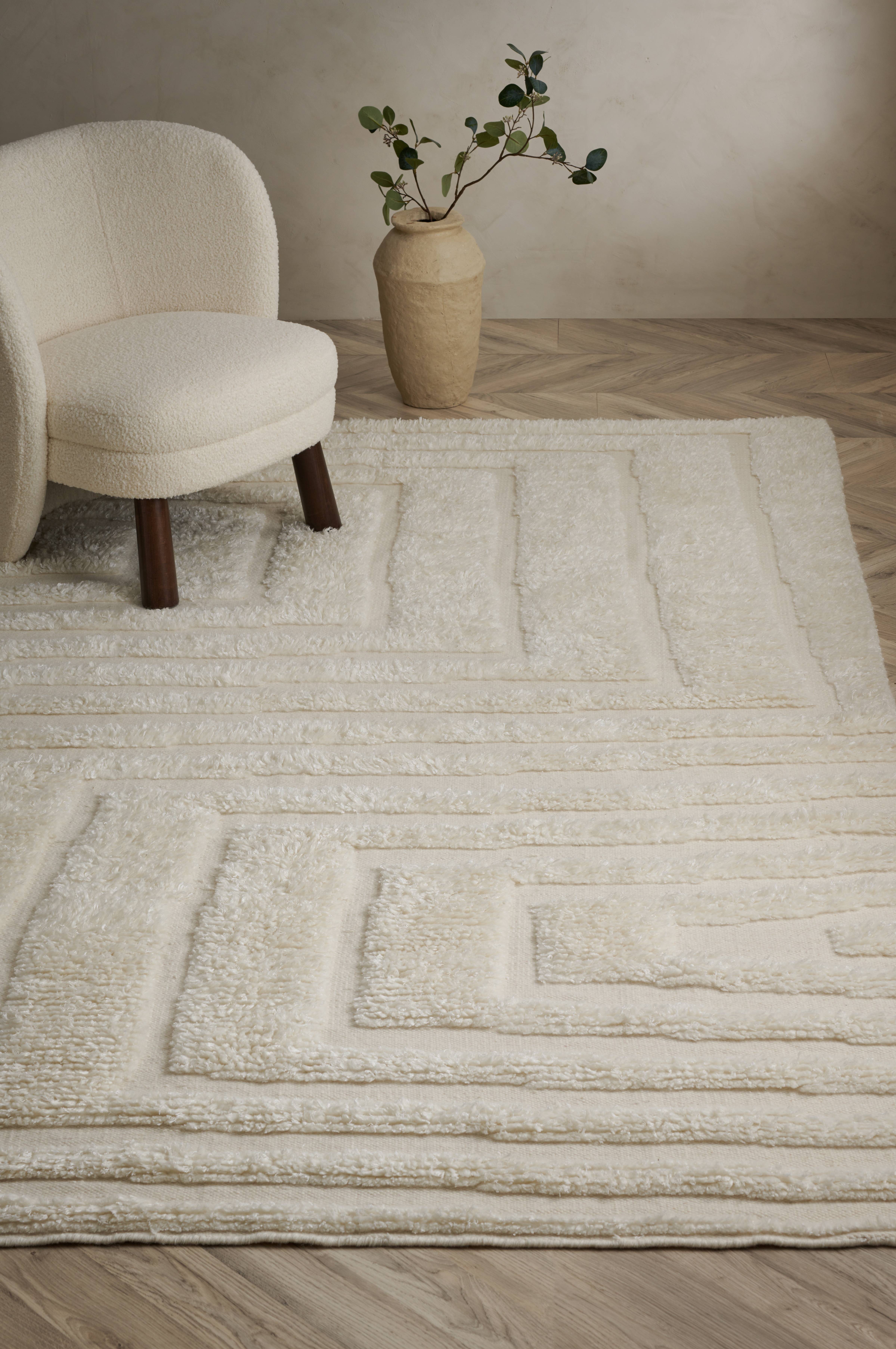 Håndvevd teppe i ull med viskoseblanding i luggen som gir teppet en fin glans. Teppets tykkelse 1,5 cm.