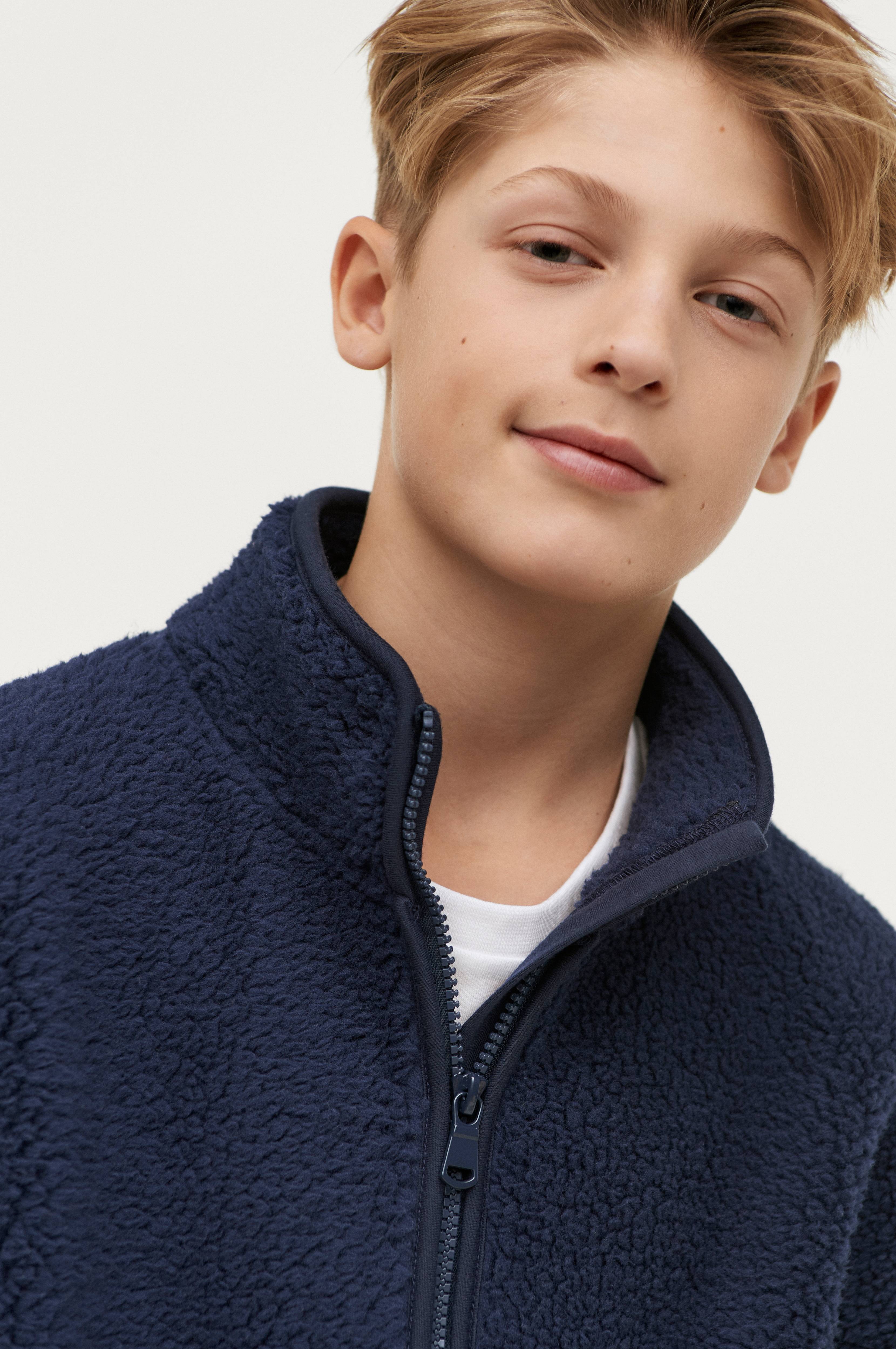 Jakke i myk og kraftig fleece med teddyfølelse. Glidelås foran, to lommer og ståkrage.
